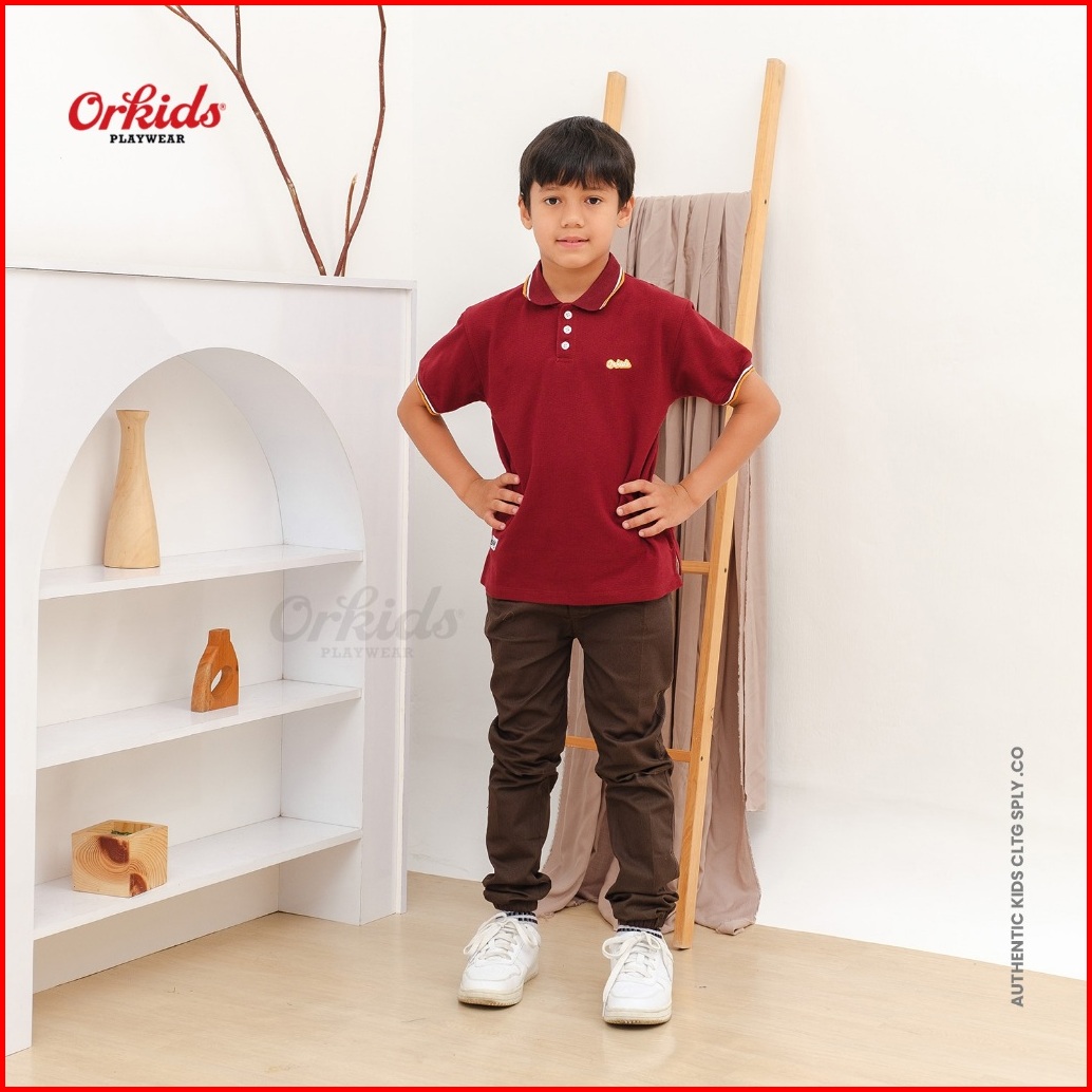 Orkids Kaos Polo Anak Laki-laki Umur 1-12 Tahun Baju Kerah Atasan Distro Harlow Maroon