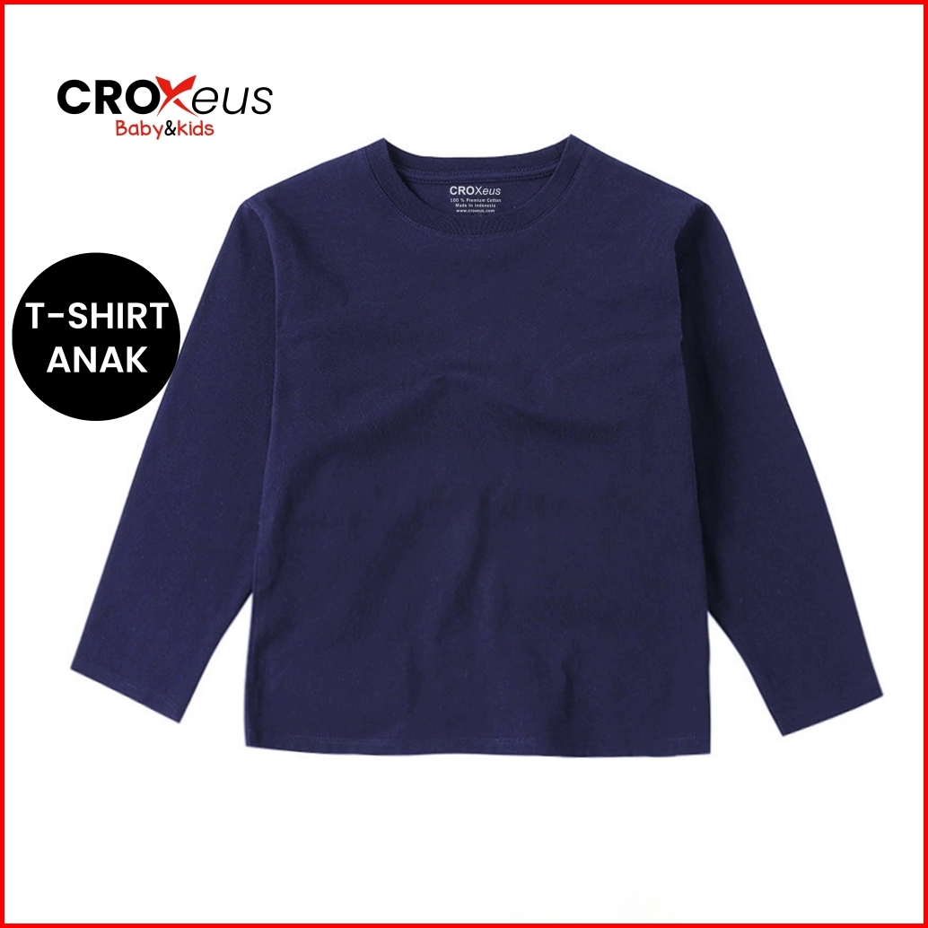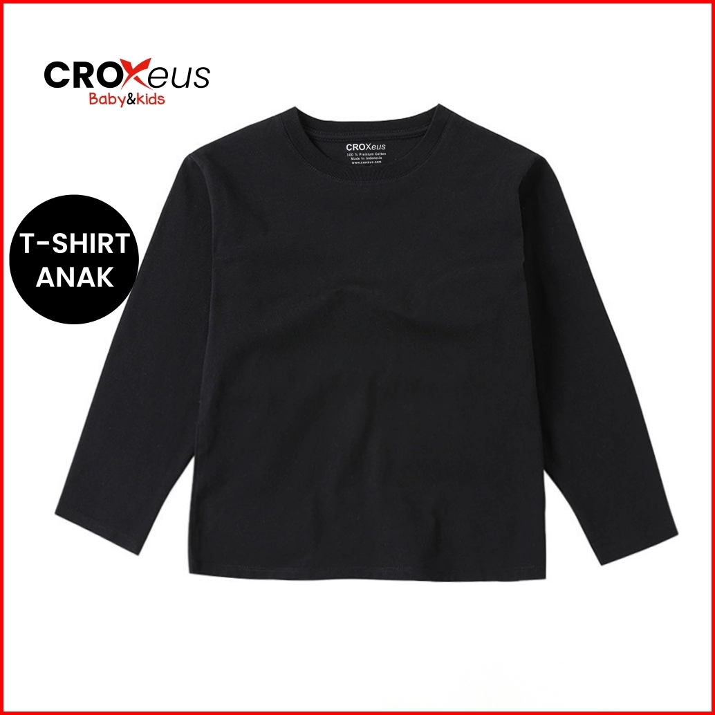 Croxeus - Kaos Polos Anak Lengan Panjang Warna Hitam