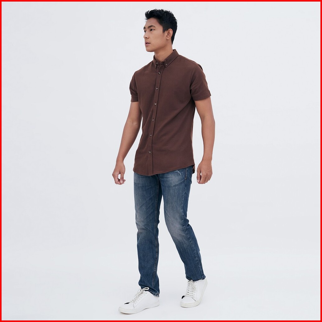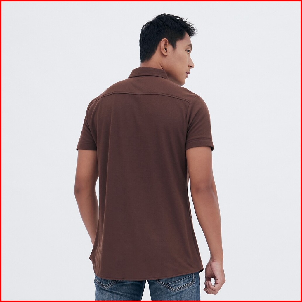 M231 Kemeja Pria Cotton Pique Pendek Coklat 1793g