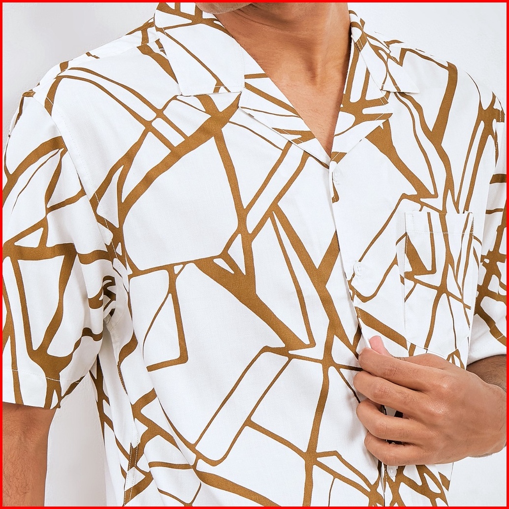 M231 Kemeja Pria Printing Hawaii Pendek Putih 2744b
