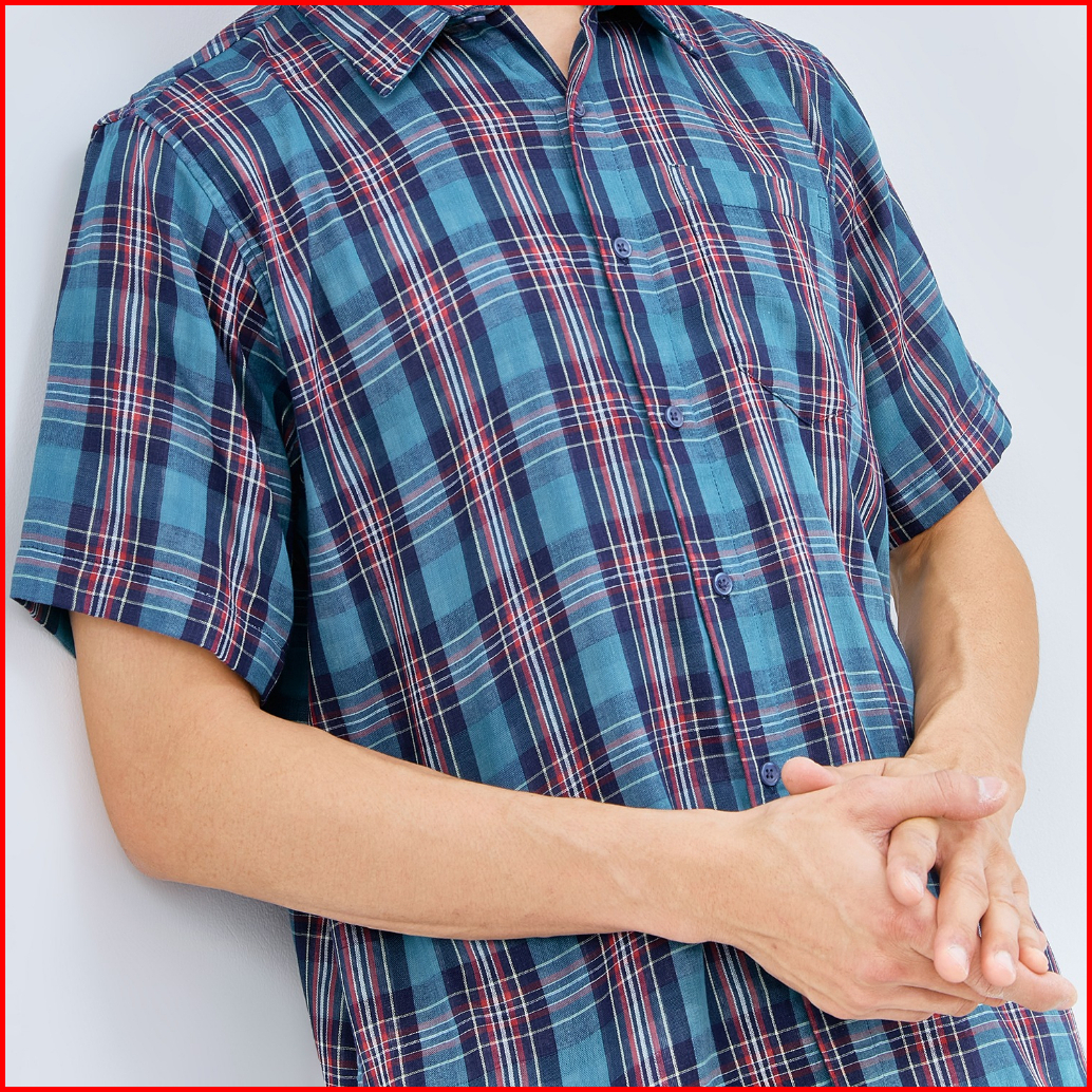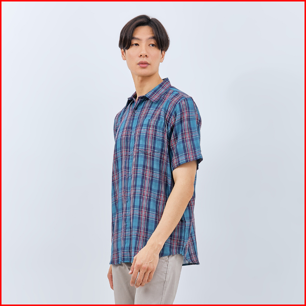 M231 Kemeja Pria Yarn Dyed Double Face Kotak Pendek Biru 2879