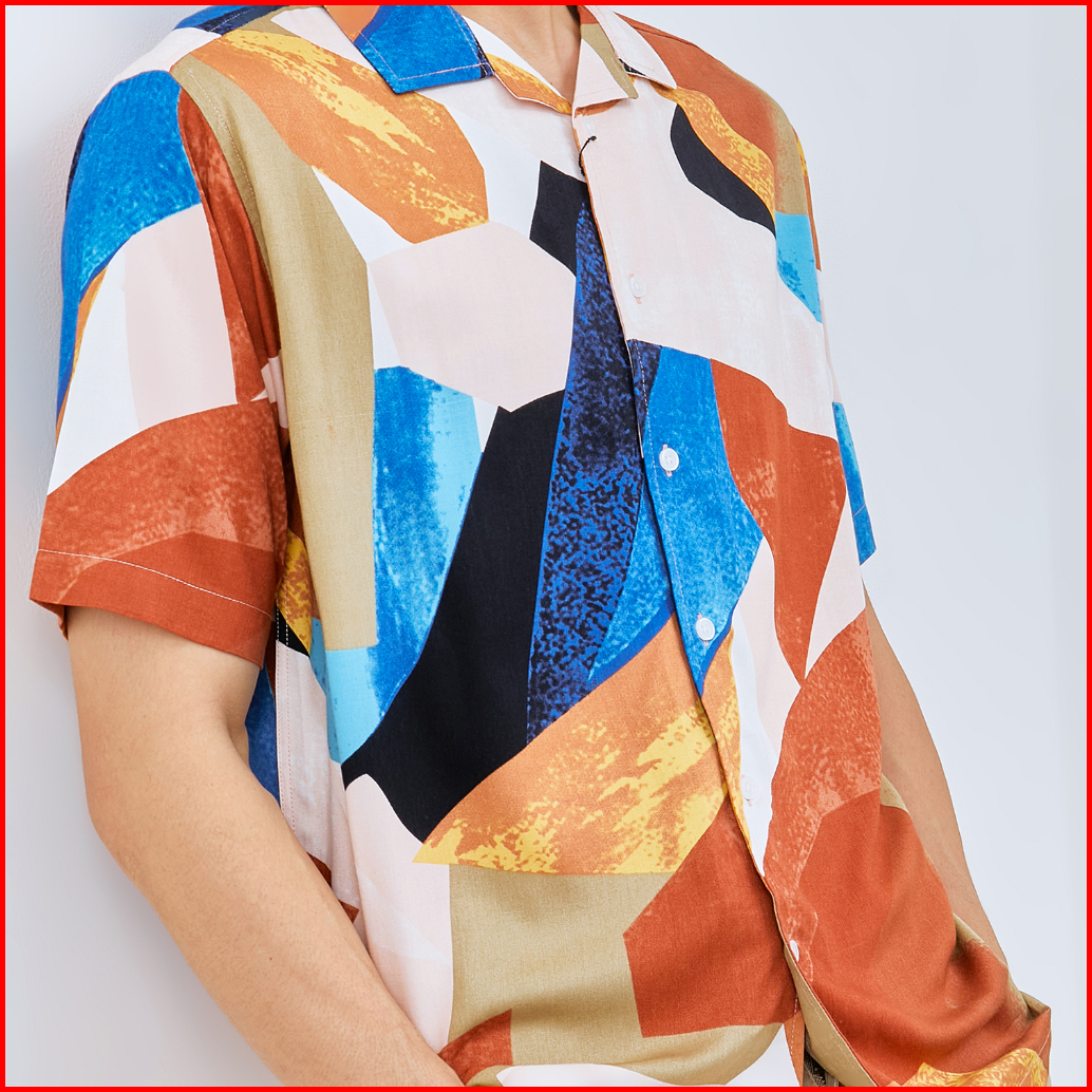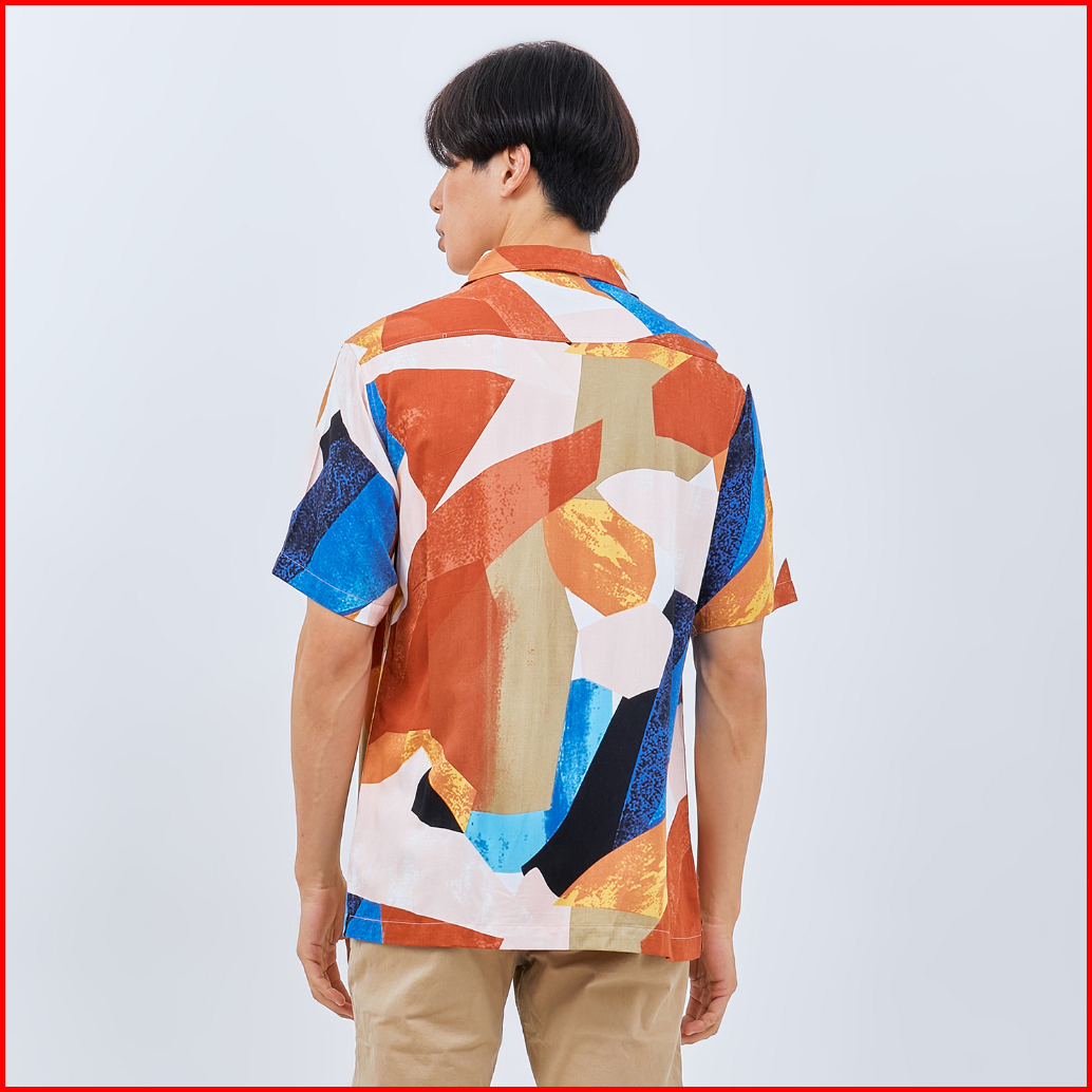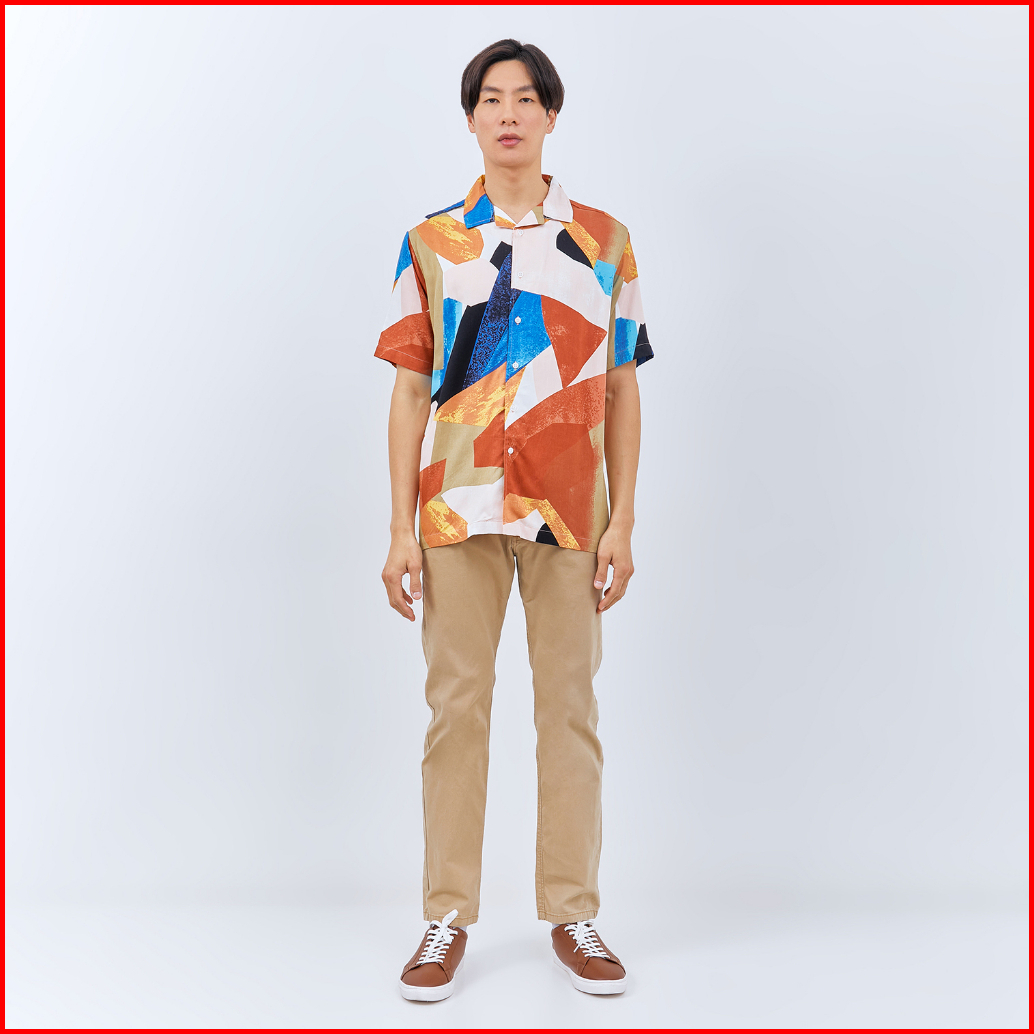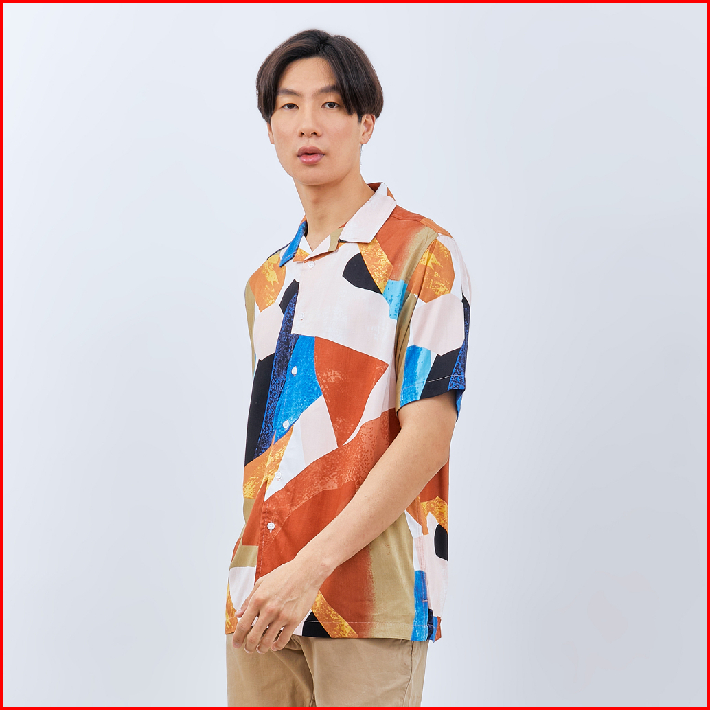 M231 Kemeja Pria Printing Hawaii Pendek Orange 3081b