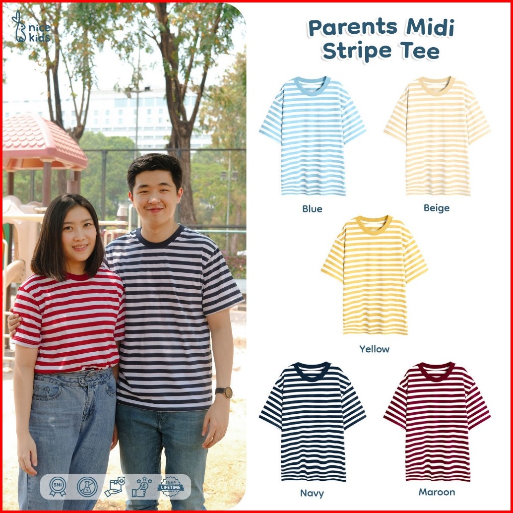 Nice Kids - Parents Midi Stripe T-shirt Kaos Garis Dewasa M-l