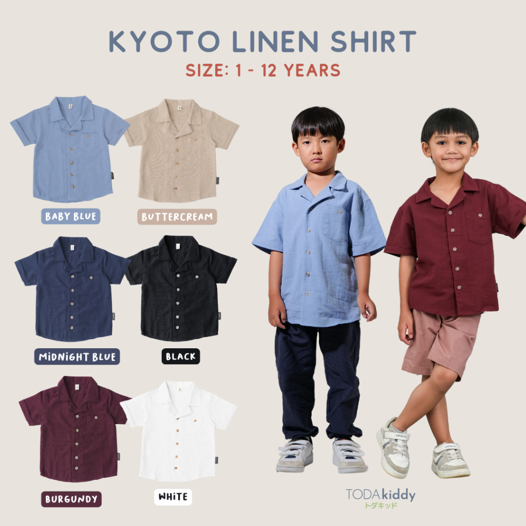 TODA KIDDY - Kyoto Linen Shirt ( kemeja anak lengan pendek / kemeja kerah anak tangan pendek / kemeja linen tebal koko anak / kemeja lebaran anak )