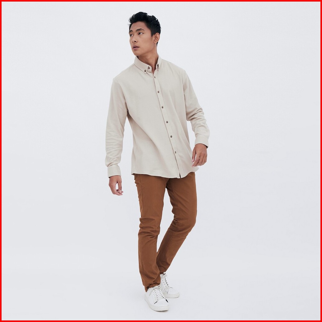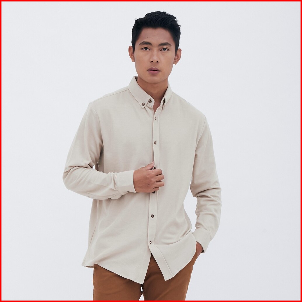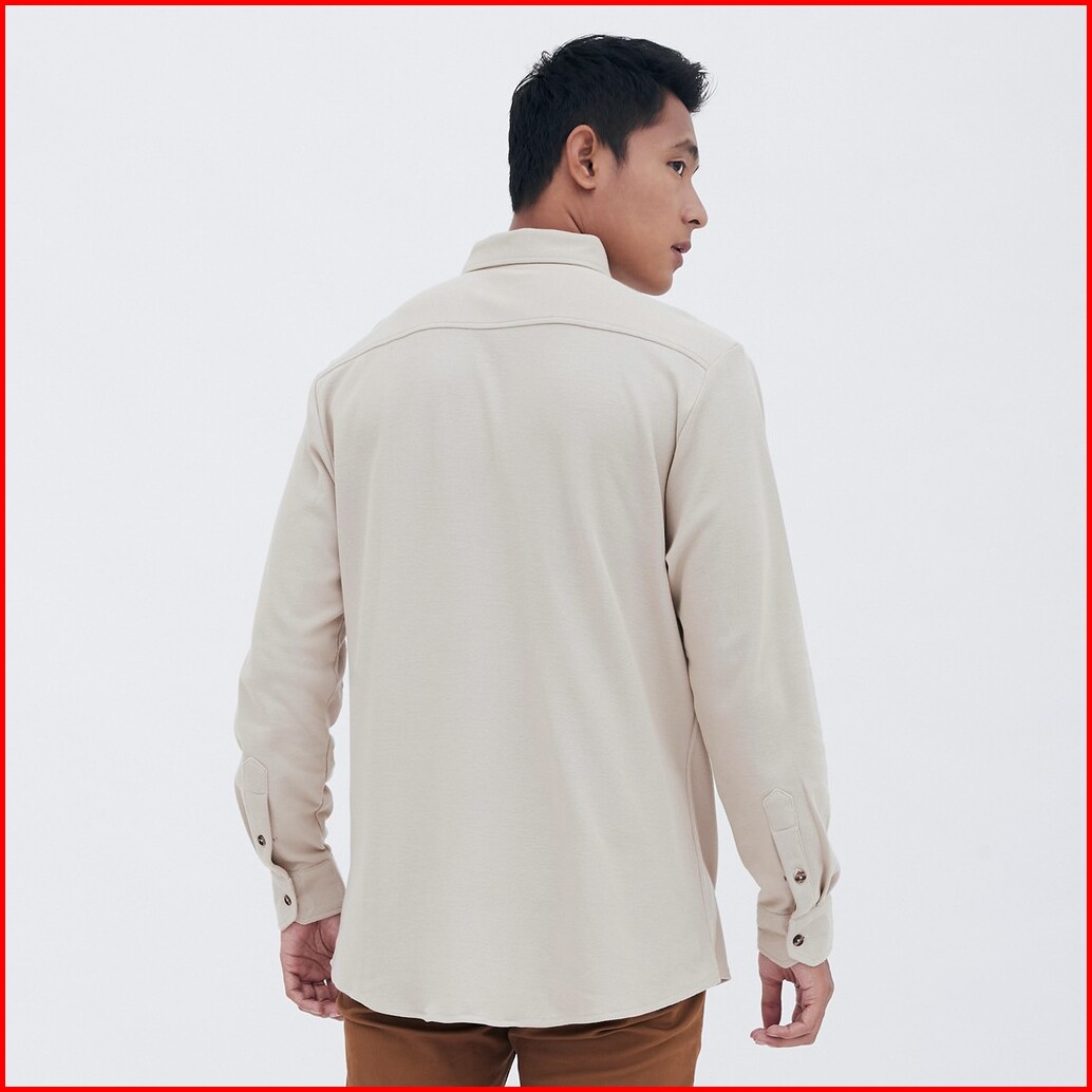 M231 Kemeja Pria Cotton Pique Panjang Beige 1792k
