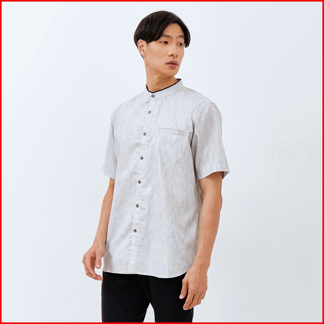 M231 Kemeja Pria Koko Shanghai Bertekstur Pendek Abu 2379b