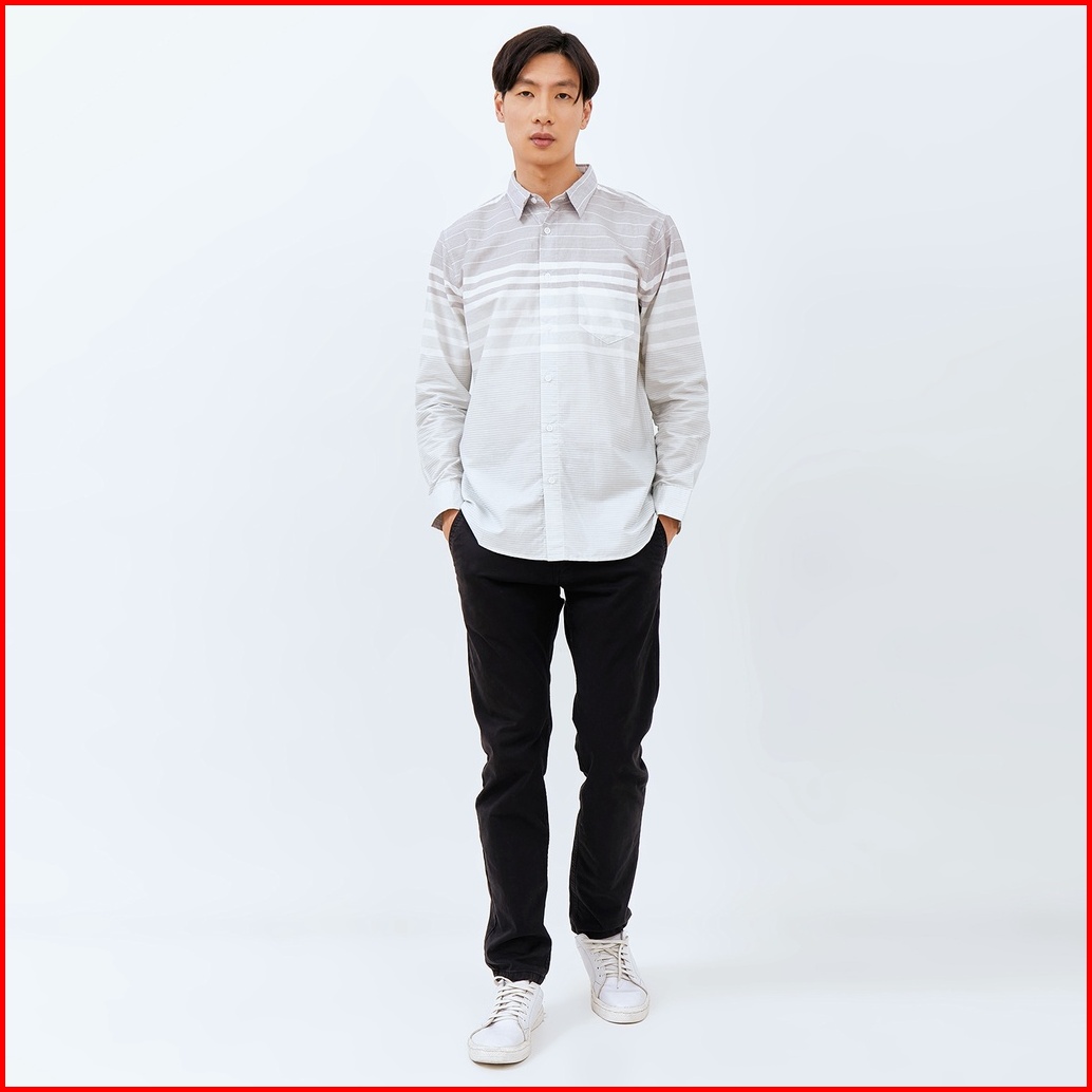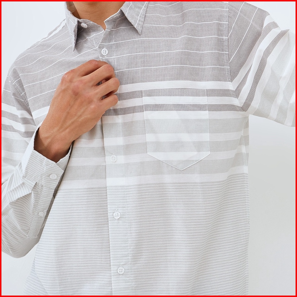M231 Kemeja Pria Stripe Panjang Hijau Mint 2713a