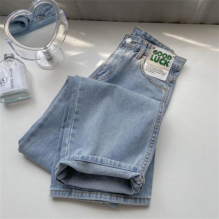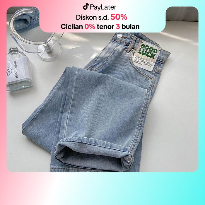 Lulu-Jeans New Biru Muda Kulot Longgar High Waist Celana Jeans Panjang Wanita(Good Luck)(Realpict) - Premium Biru Muda63