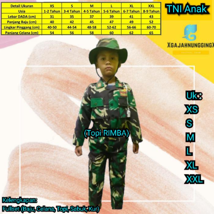 CICILAN TANPA DP BAJU SERAGAM TNI TENTARA CILIK ANAK KECIL KARNAVAL 17AN MURAH BANDUNG TNI TOPI RIMBA XS (12 TAHUN)