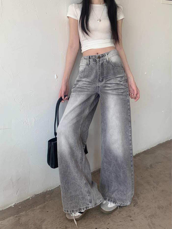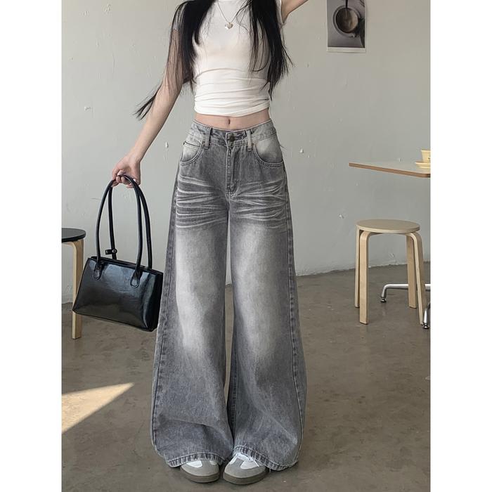 Lulu Abu-Abu Kulot Highwaist Celana Panjang Wanita-Baggy Jeans Wanita--Goresan Halus Dan Jelas - Premium Abu, S
