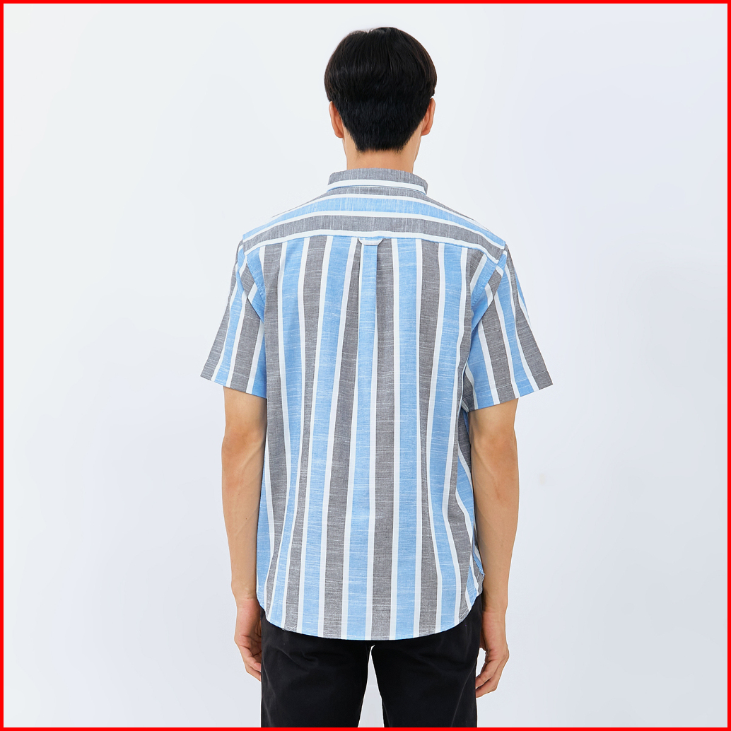 M231 Kemeja Pria Stripe Pendek Biru 3139b