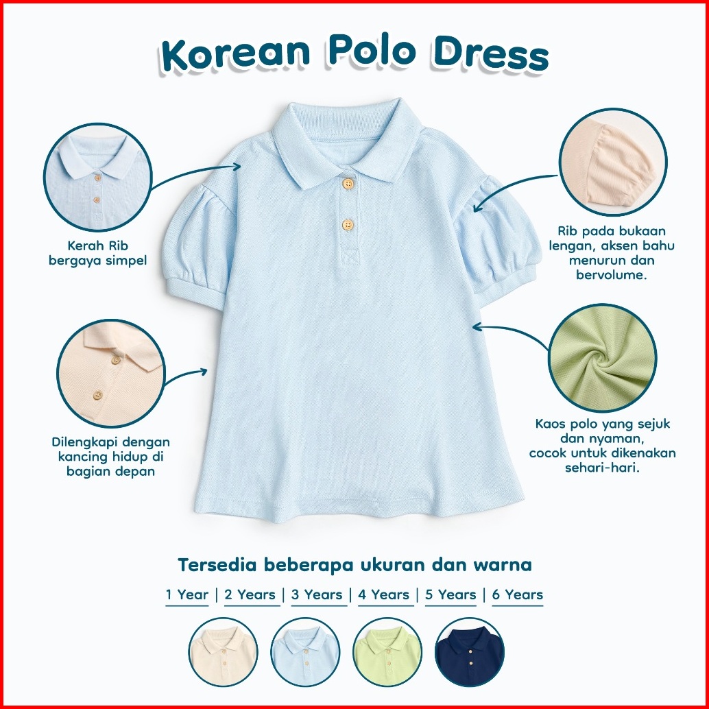 Nice Kids - Korean Polo Dress Dress Anak Perempuan 1-6 Tahun