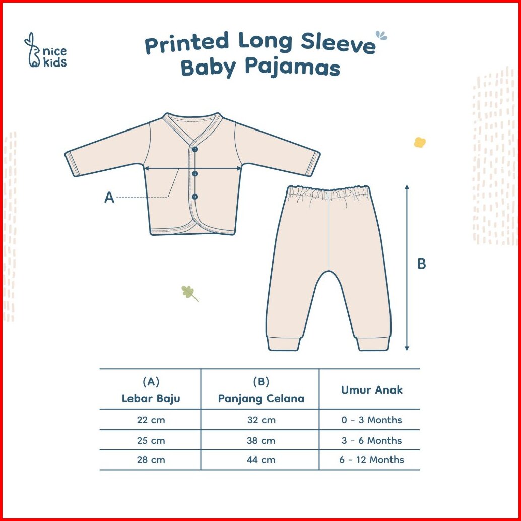 Nice Kids - Printed Long Sleeve Baby Pajamas Set Baju Tidur Bayi Lengan Panjang Piyama Bayi