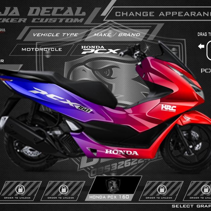 CICILAN TANPA DP DECAL STICKER HONDA PCX 160 FULLBODY CUSTOM MOTIF GRADASI KODE PCX 004 BIRU UNGU