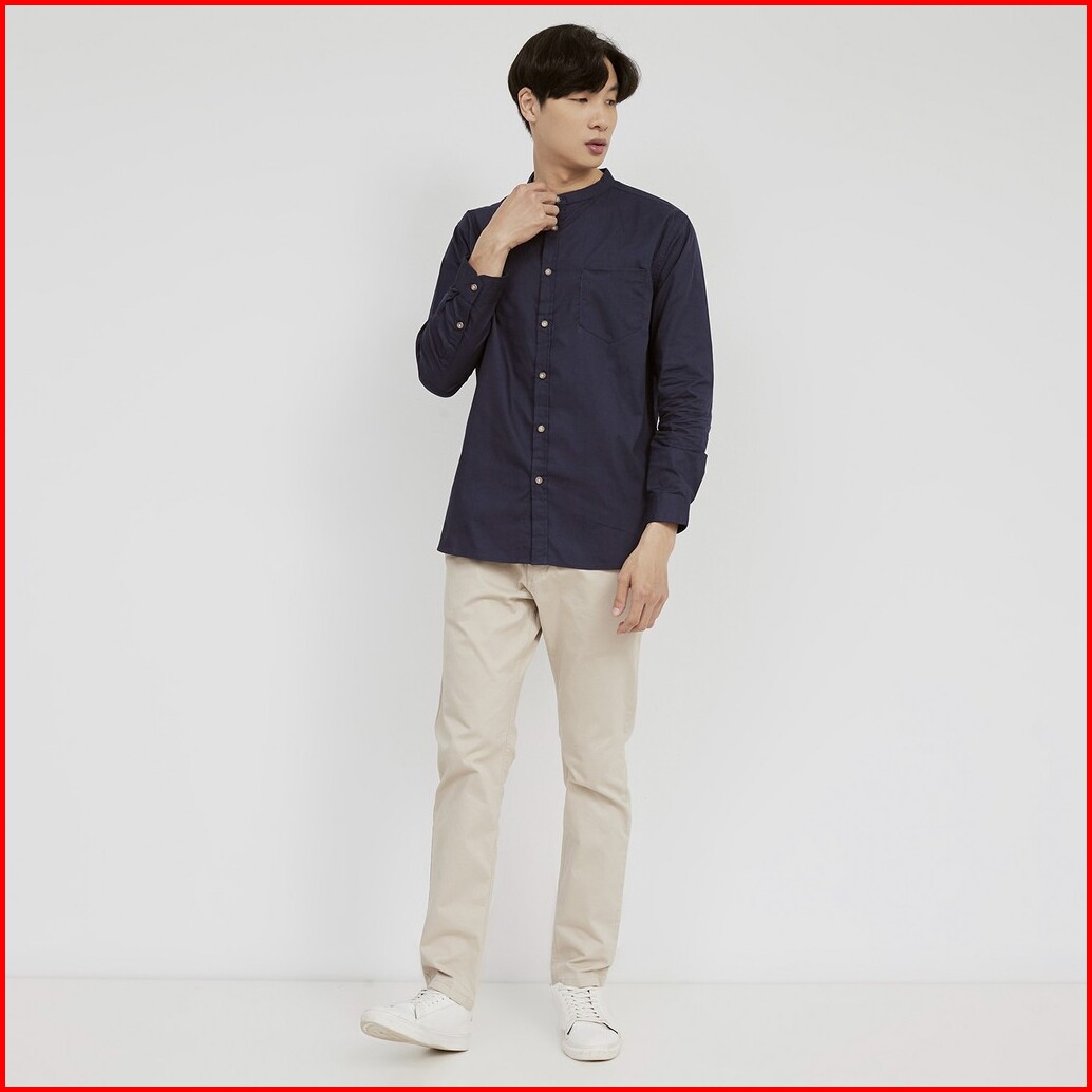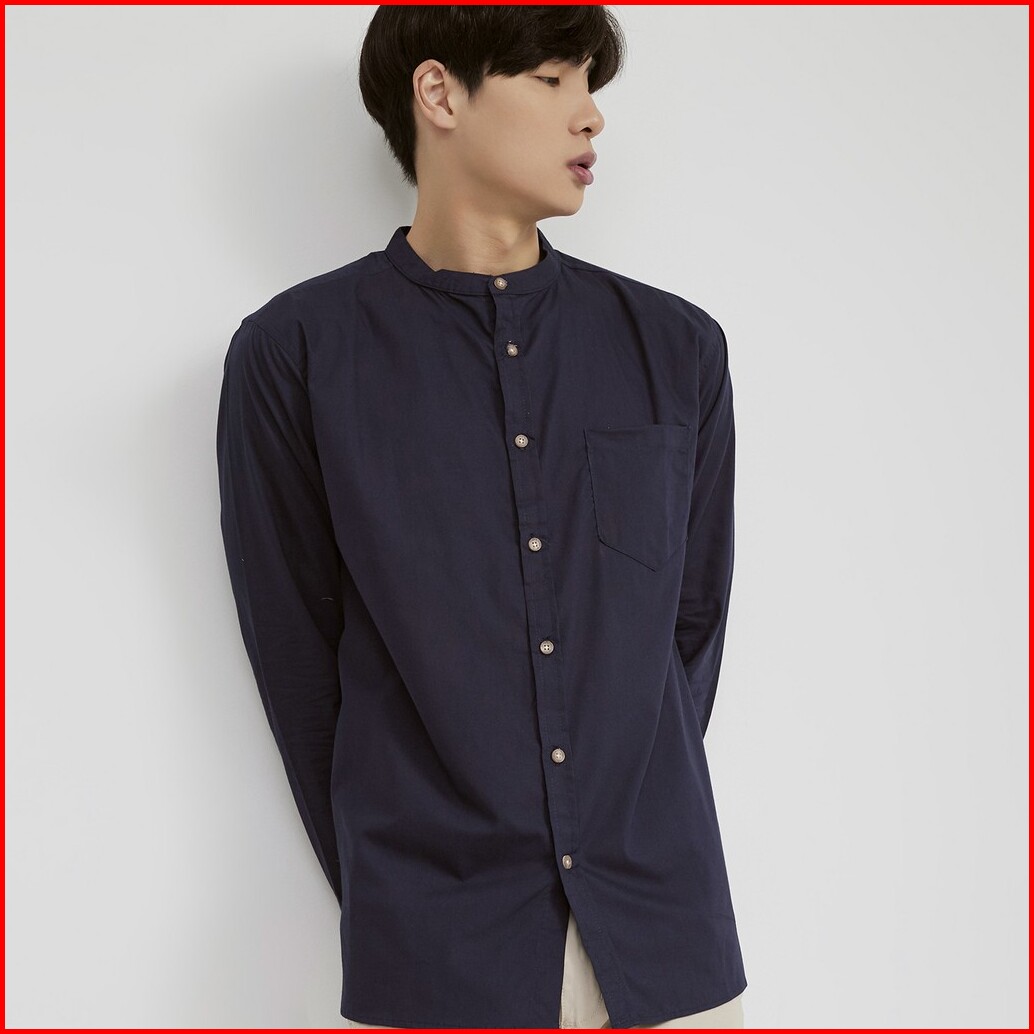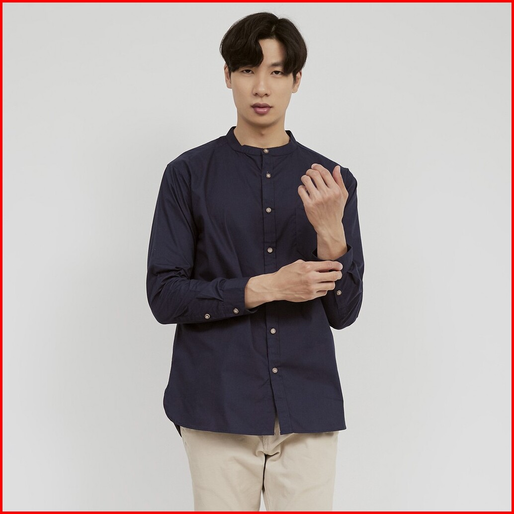 M231 Kemeja Pria Koko Shanghai Polos Oversized Panjang Navy 1985d