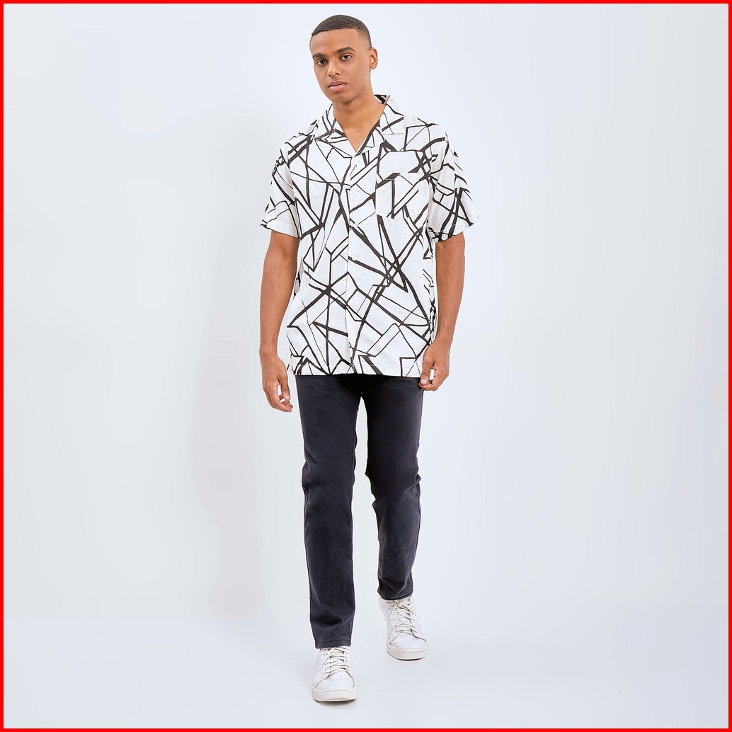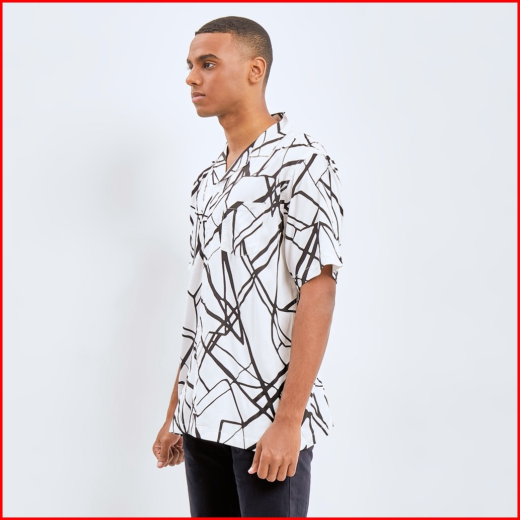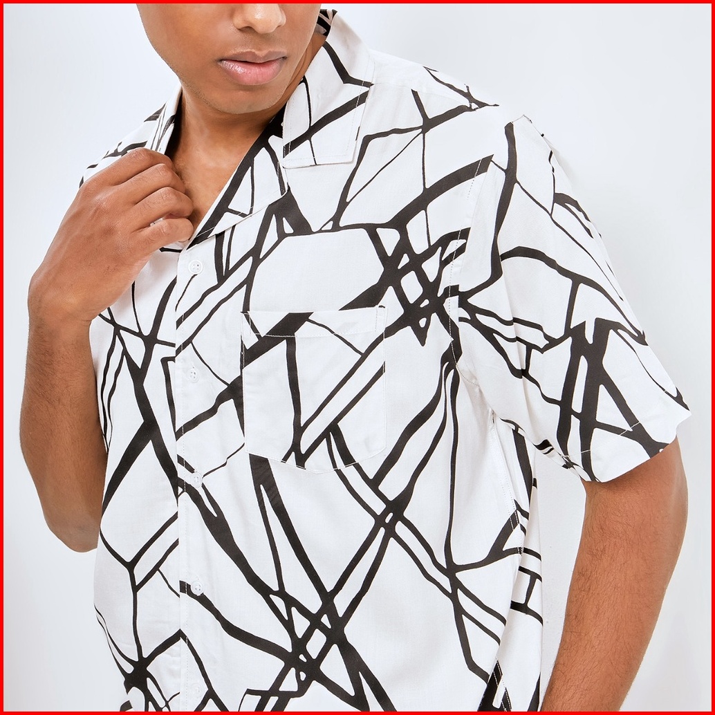 M231 Kemeja Pria Printing Hawaii Pendek Putih 2744a