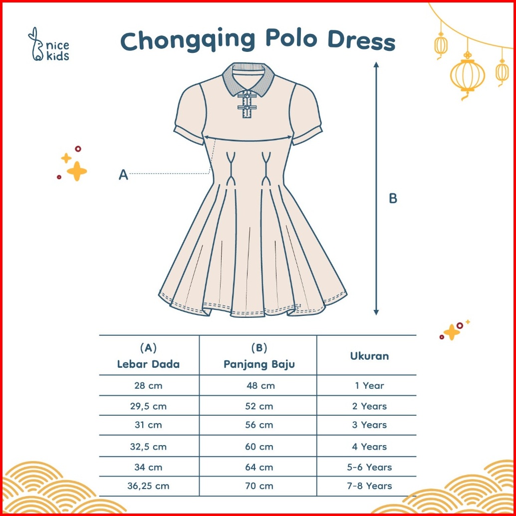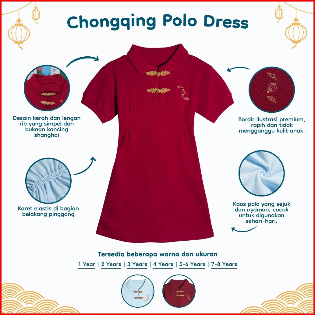 Nice Kids - Chongqing Polo Dress Dress Polo Imlek Polo Cheongsam Dress Anak Perempuan 1-8 Tahun