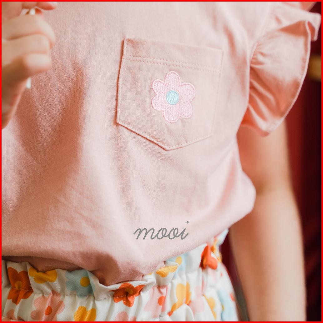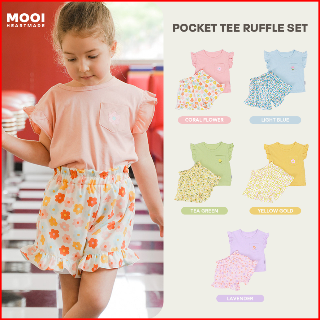 Mooi Setelan Anak Perempuan Ruffle Pocket Tee