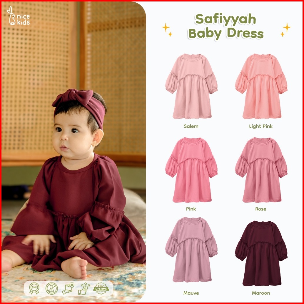 Nice Kids - Safiyyah Baby Dress 0-2 Tahun Dress Bayi Terusan Bayi Perempuan Gaun Bayi
