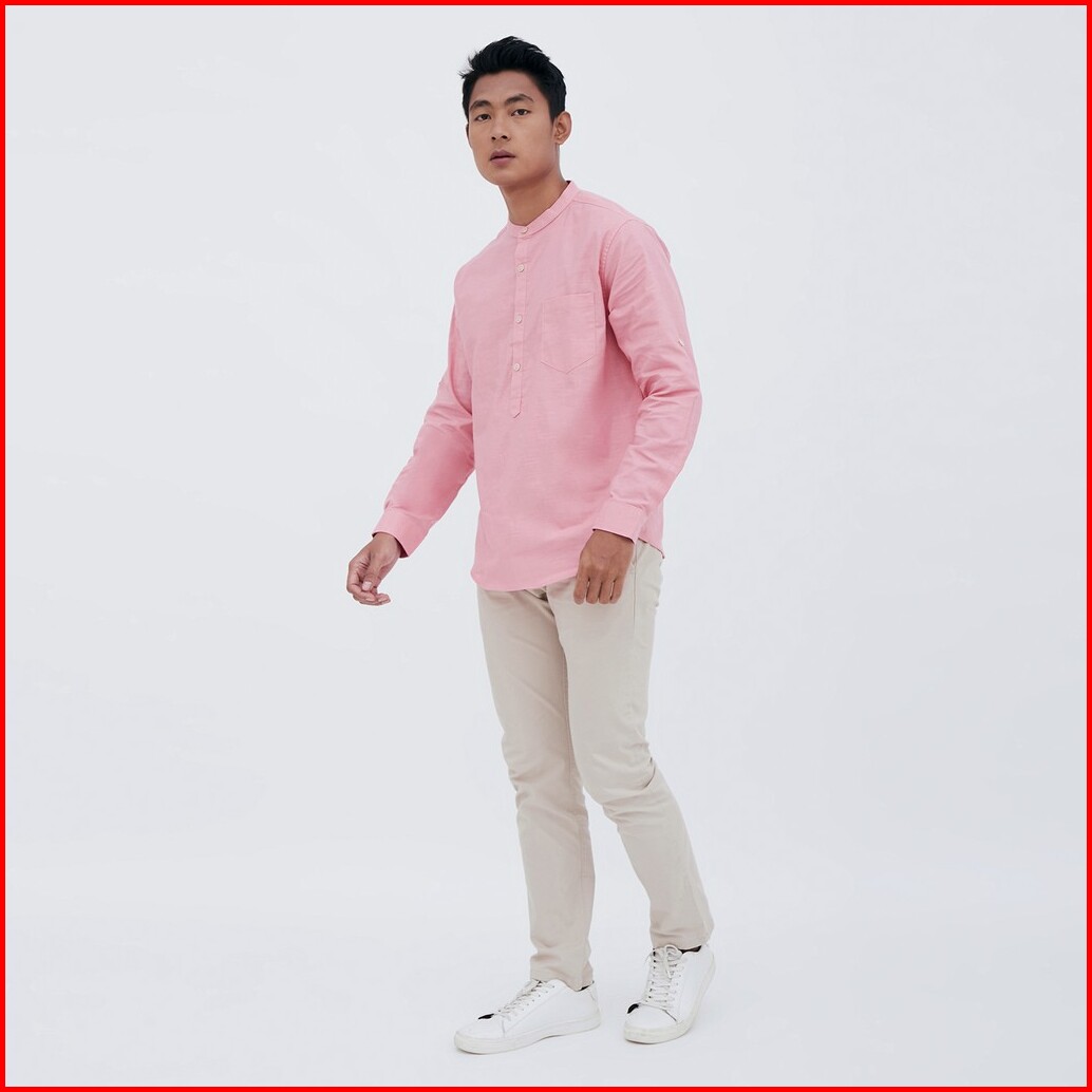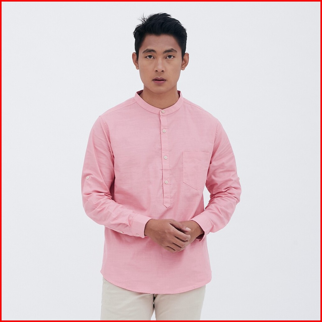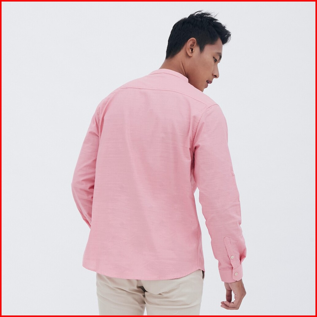 M231 Kemeja Pria Koko Shanghai Polos Panjang Pink 1694