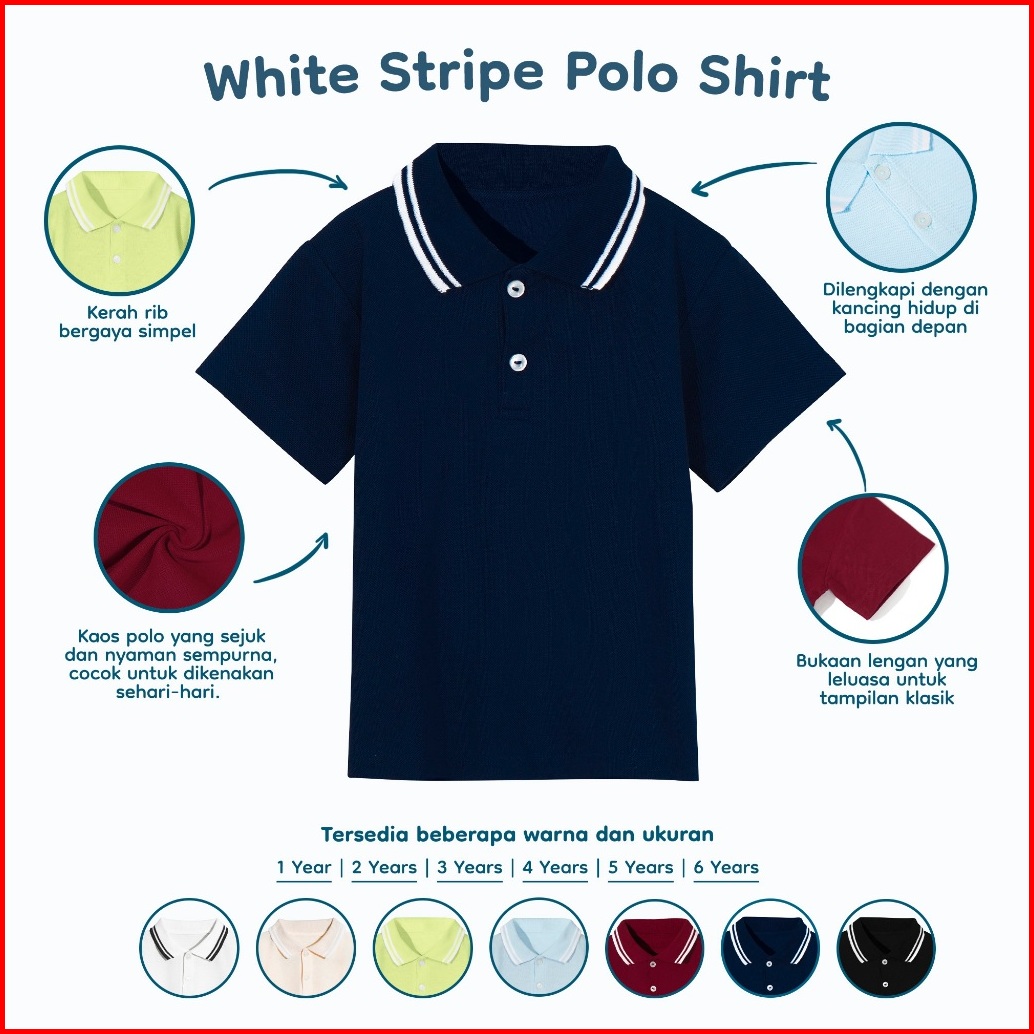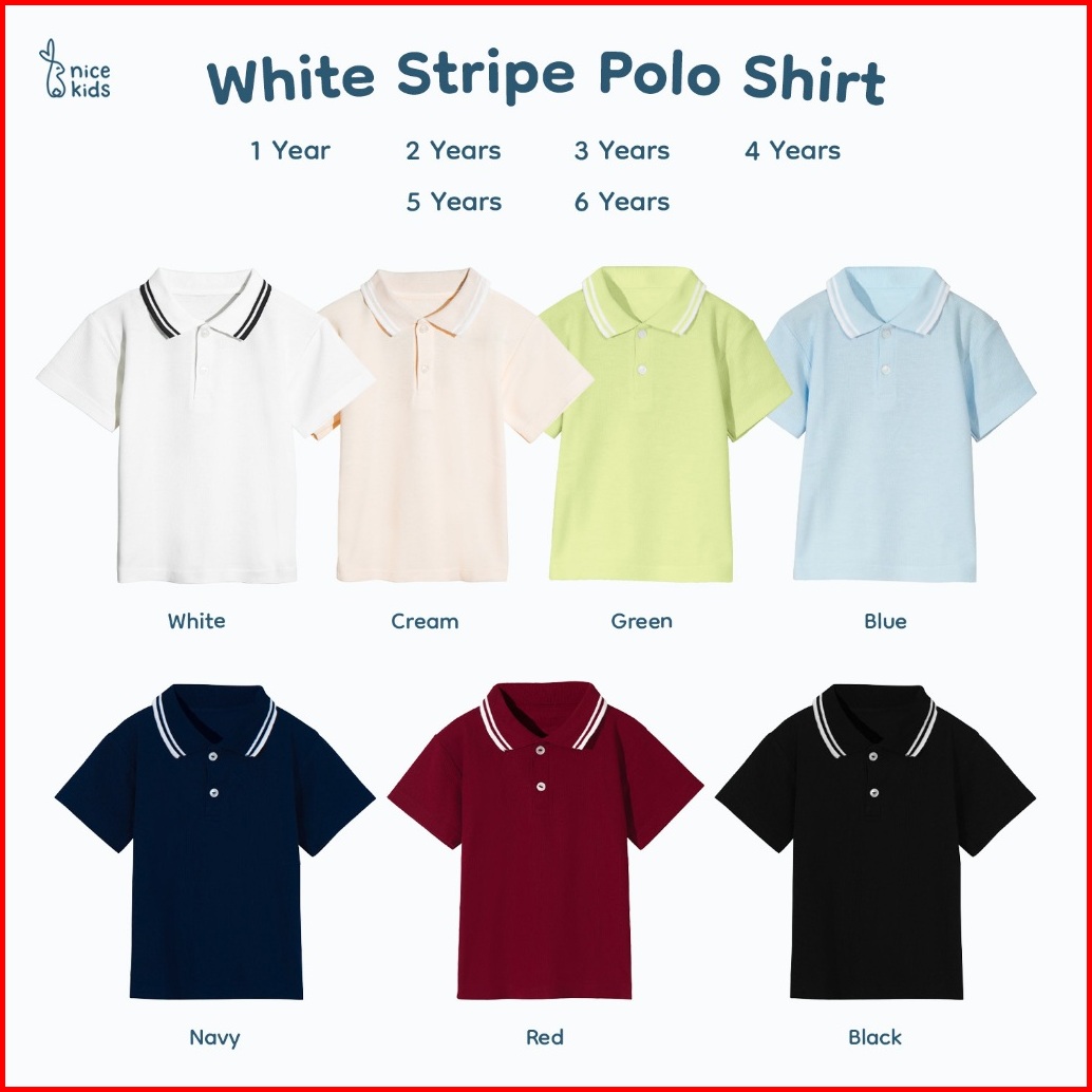 Nice Kids - White Stripe Polo Shirt Kaos Atasan Berkerah Anak Perempuan Anak Laki-laki 1-6 Tahun