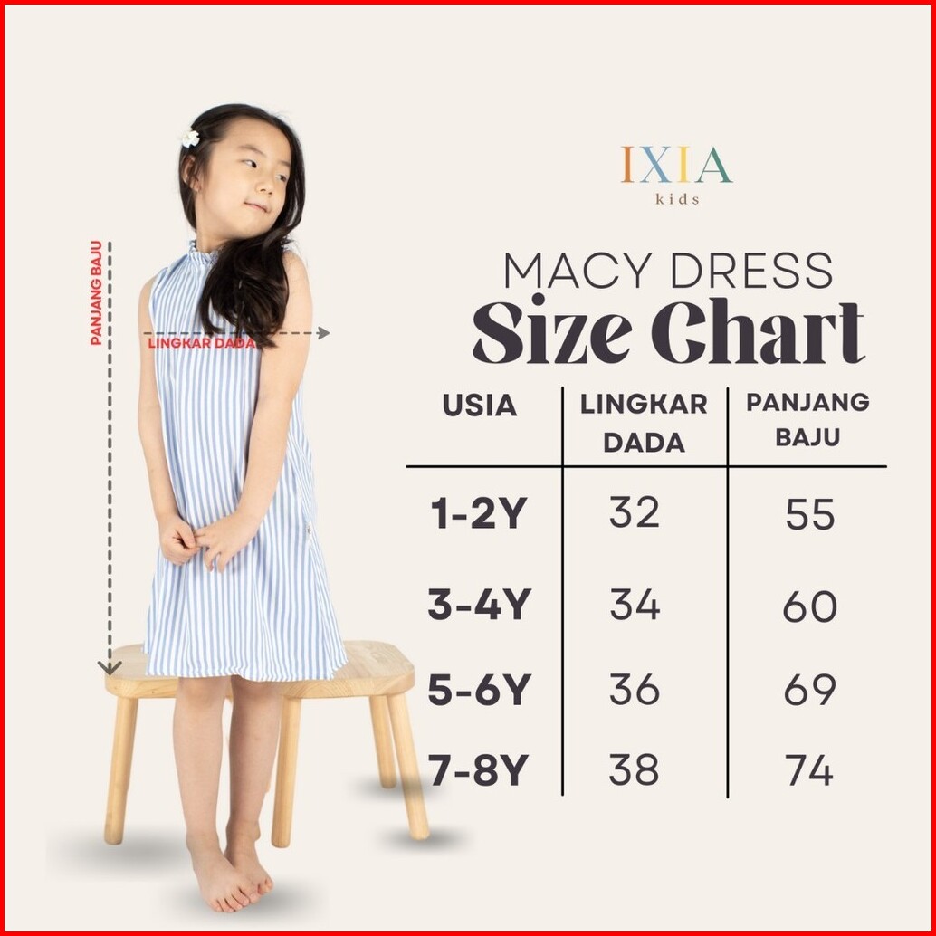 Ixia Kids Macy Dress Baju Dress Anak Perempuan 1-8 Tahun