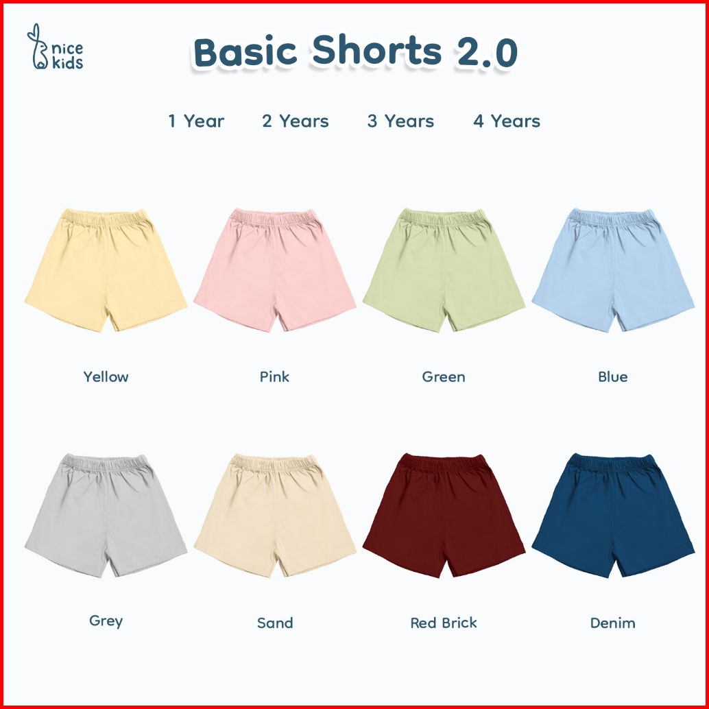 Nice Kids - Basic Shorts 2.0 New Color Celana Anak Celana Pendek Polos Size 1-4 Tahun