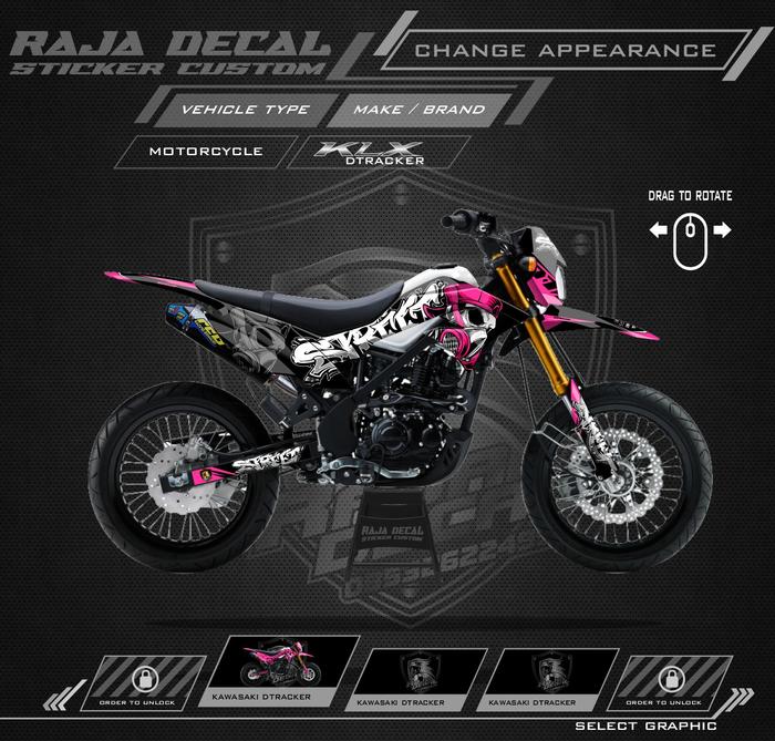 CICILAN TANPA DP DECAL STICKER KAWASAKI DTRACKER SUPERMOTO CUSTOM GRAFFITI KODE DTX 009 HITAM HOTPINK
