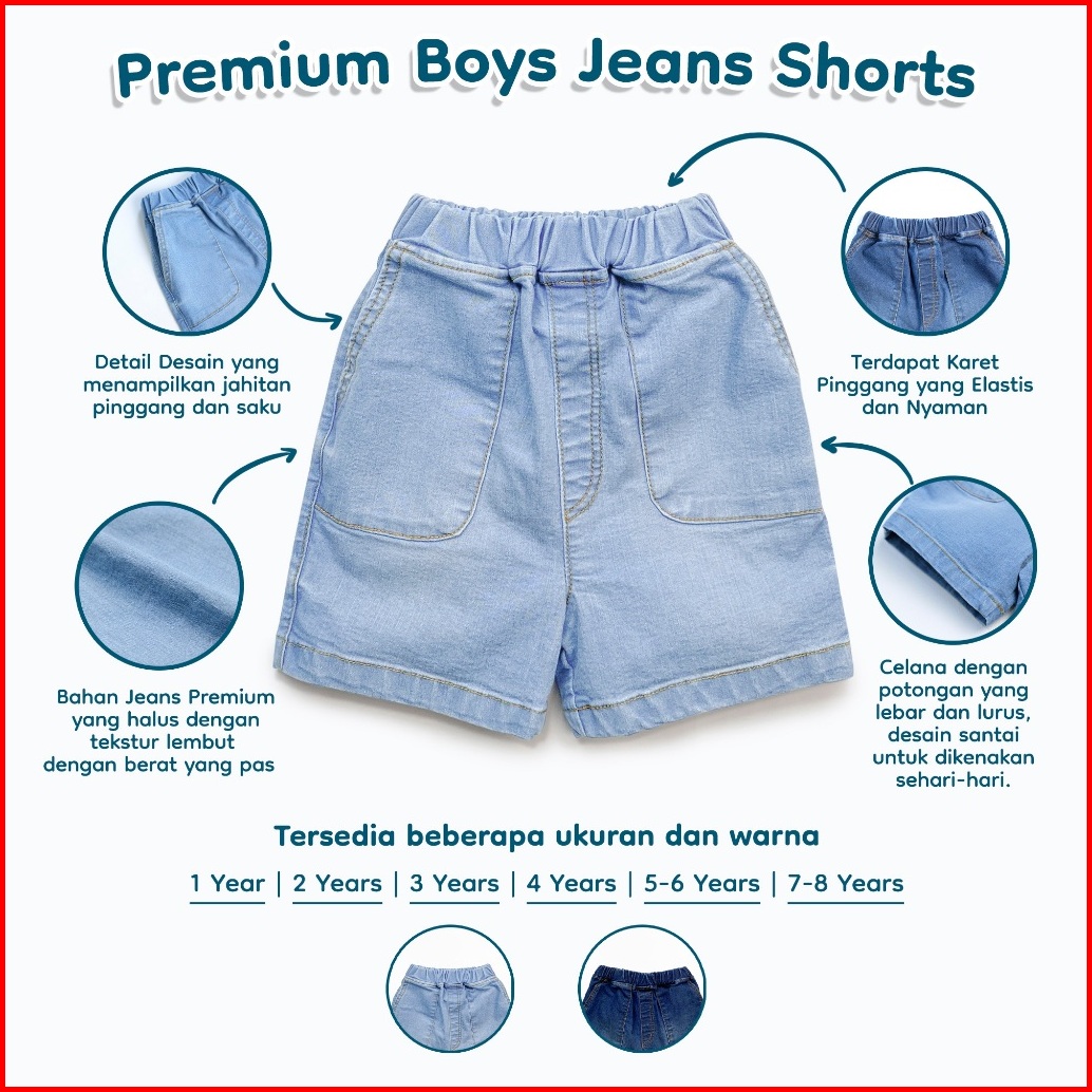 Nice Kids - Premium Boys Jeans Short Baby Kids Celana Pendek Anak Lak-laki 1-6 Tahun Bawahan Anak Laki-laki Denim