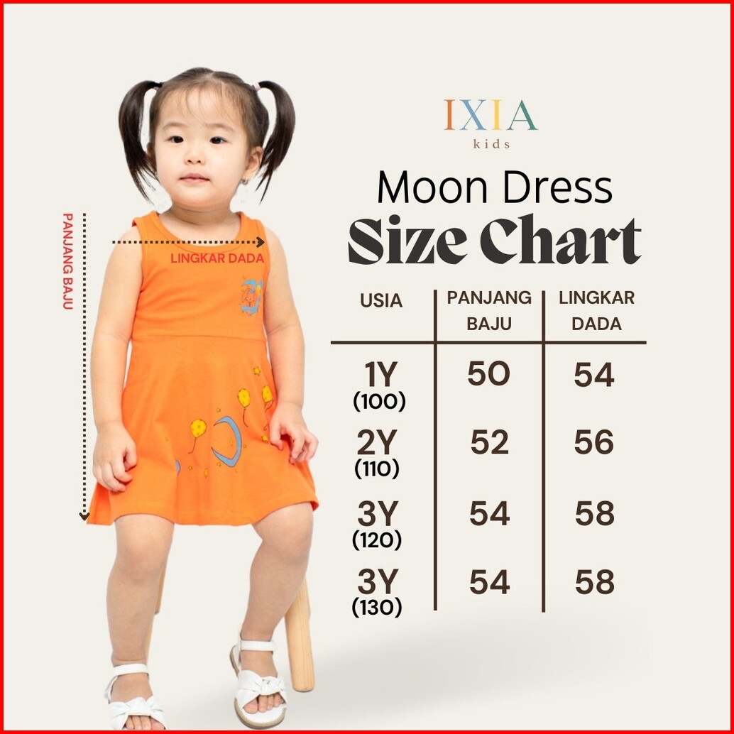 Ixia Kids Moon Dress Baju Dress Anak Perempuan 2-5 Tahun
