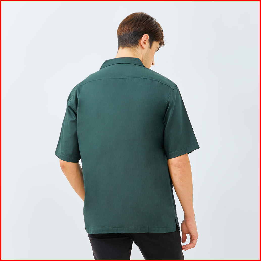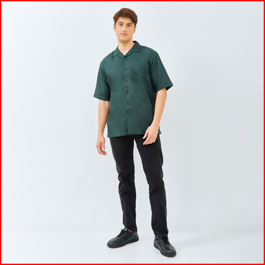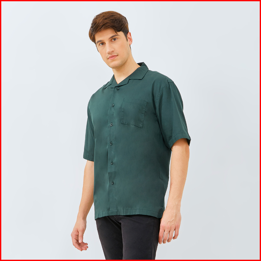 M231 Kemeja Pria Basic Polos Hawaii Oversized Pendek Hijau Botol 2190m