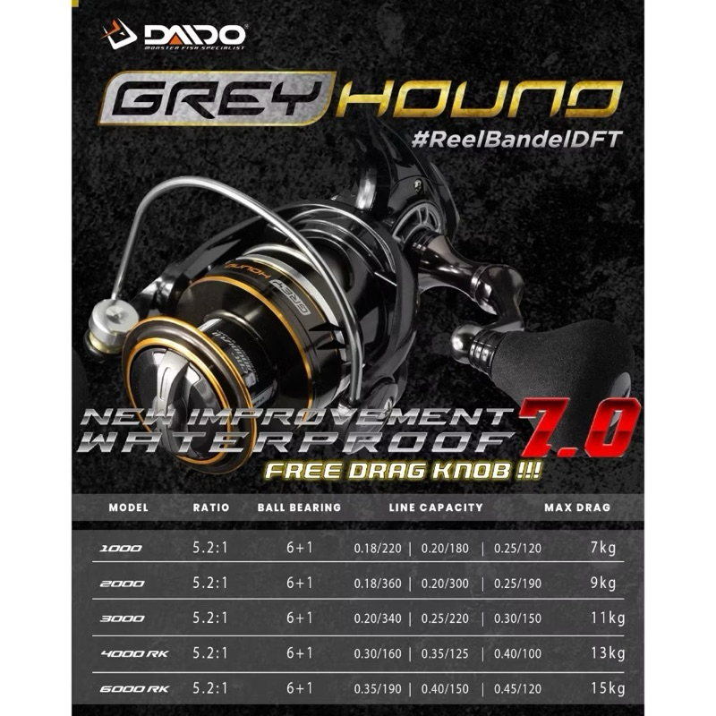 Reel DAIDO GREY HOUND NEW 7.0 Waterproof One Way Power Handle One Peace 1000-6000