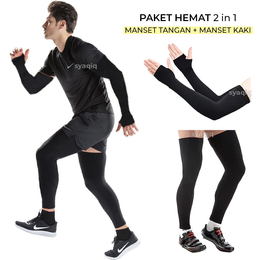 PAKET HEMAT 2 IN 1 MANSET TANGAN HANDSOCK ARM SLEEVE MANSET KAKI LEG SLEEVE LEG WARMER PELINDUNG LUTUT BASELAYER PERLENGKAPAN OLAHRAGA RUNNING JOGGING HIKING CLIMBING