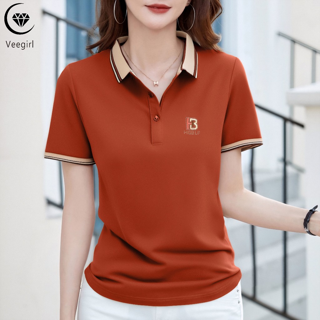 Veegirl Kaos Polo Wanita Modis Lengan Pendek Bahan Adem Nyaman Dipakai Polo Cewek Casual Kekinian Elegan