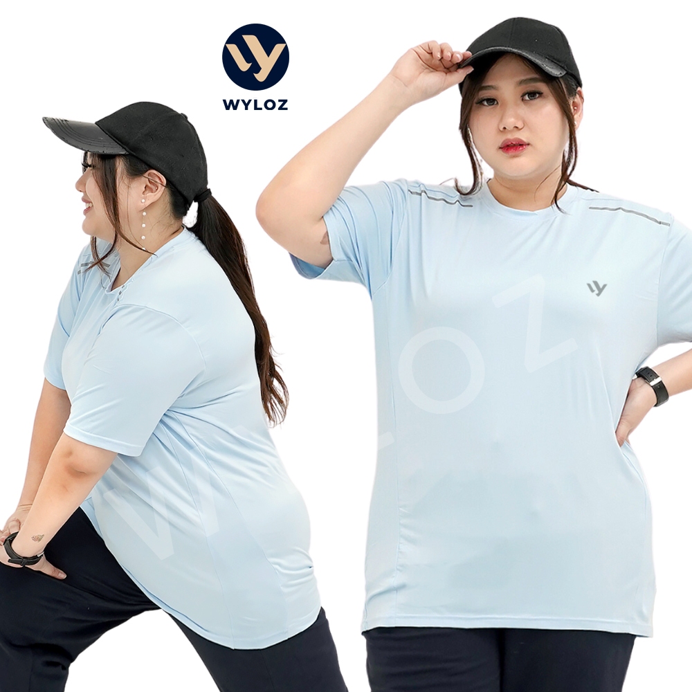 WYLOZ Baju Kaos Training Olahraga Jumbo Big Size Lengan Pendek Wanita Jersey Senam Gym Fitness Lari Running Jogging Sepeda Yoga Quick Dry Fit T-Shirt Sport Cewek Perempuan Dewasa