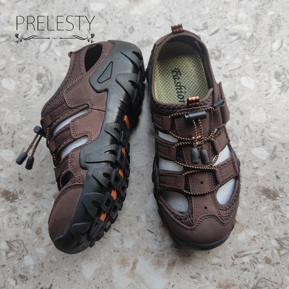 100% Kulit Sapi Asli Sepatu Sandal Hiking Pria Sepatu Gunung Anti Slip Original Mendaki Sports Mewah Trekking Outdoor 14