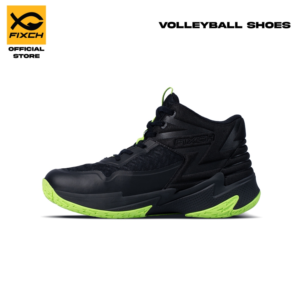 FIXCH - Oppus Sepatu Voli Mid Cut - Black/Spring Green/Silver