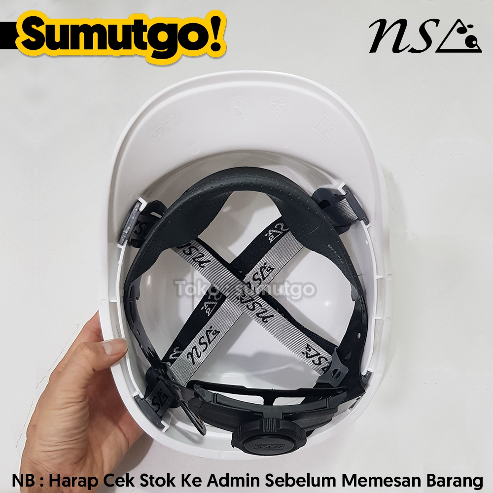 Helm Safety Proyek NSA Vented WARNA PUTIH + ikat Kepala Putar + Tali Dagu Karet / Safety Helmet Model Topi Baseball Cap + Fastrac + Rubber Chinstraps