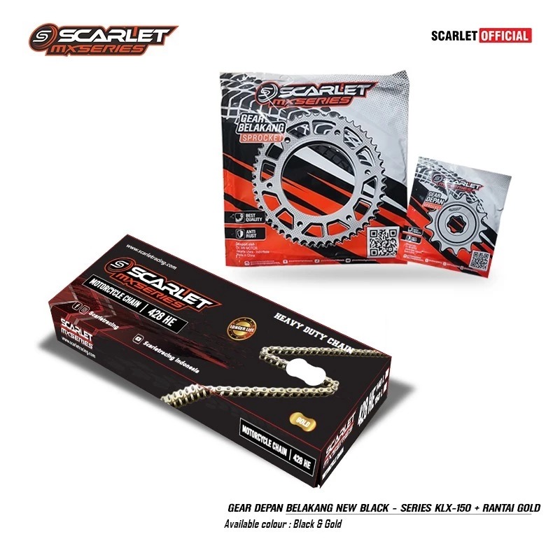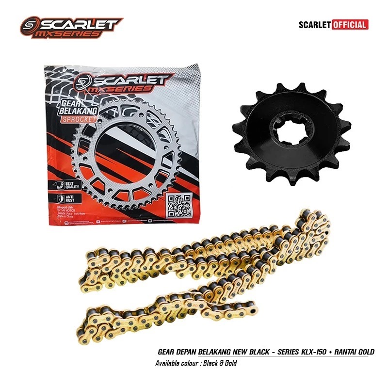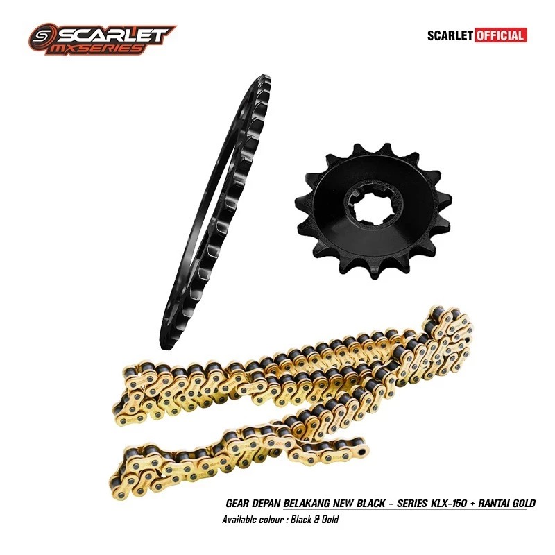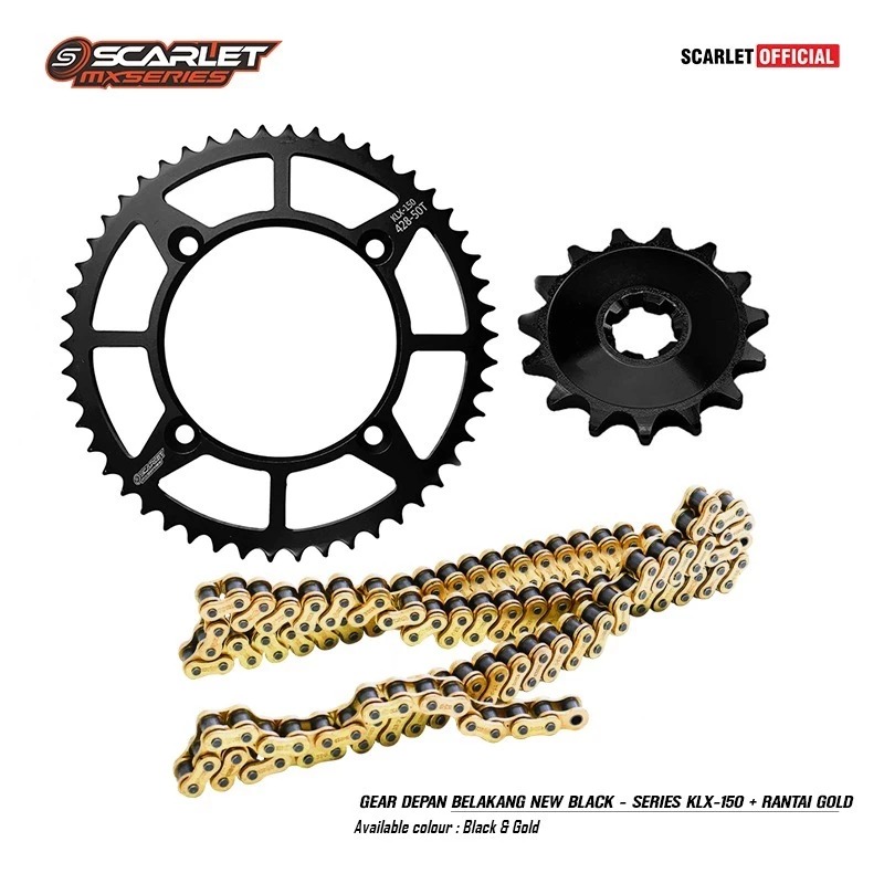Scarlet Racing - Gear Gir Set Depan Belakang Black Series KLX 428 Plus Rantai Gold 150l