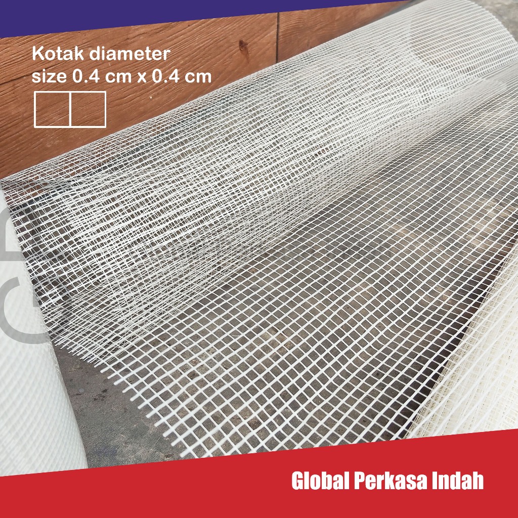 Fiberglass Mesh Kawat Waterproofing Jaring Net Plastik Polyester Lebar 59cm / 120cm Panjang 60m / 55m Ukuran Mesh 4x4mm