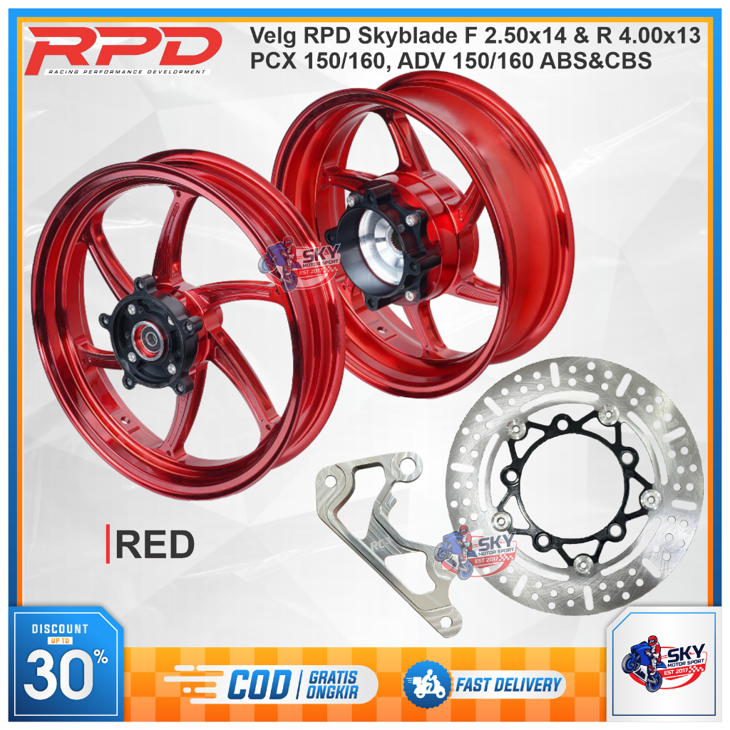 Velg RPD Adv 150 / Adv 160 / Pcx 150 / Pcx 160 Plus Disc Moz F 2.50x14 R 4.00x13 Skyblade RPD
