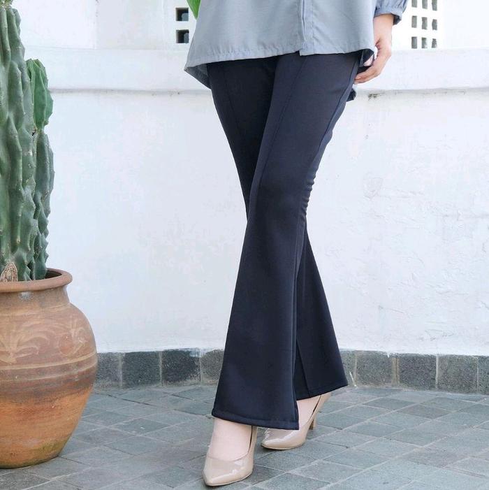 Celana Scuba Cutbray Premium / Kulot Cutbray Wanita Scuba Melar - Hitam, Standar