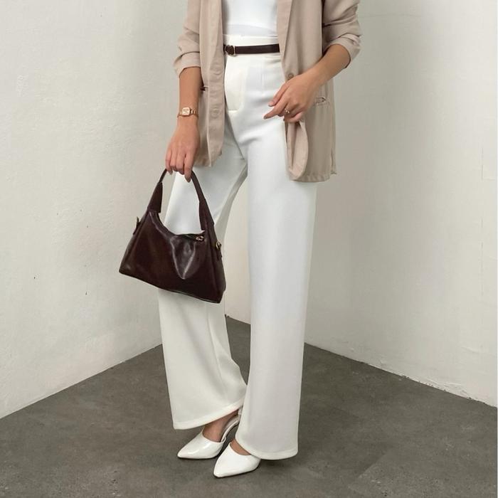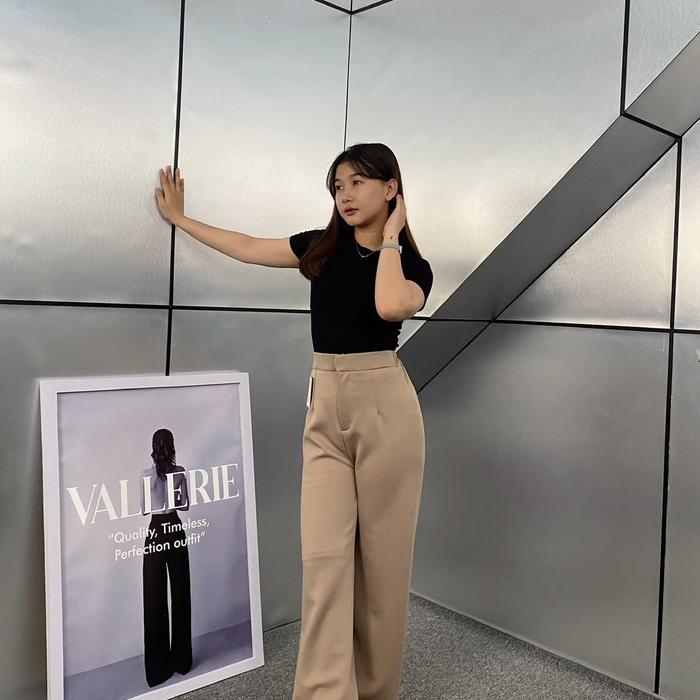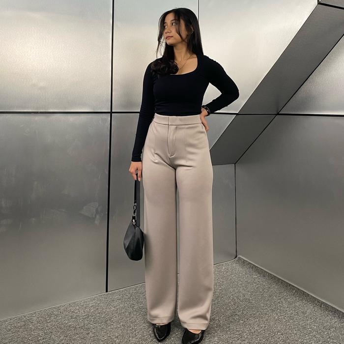 Loose Pants Scuba 399 Celana Anti Kusut Celana Kulot Wanita Polyester - Hitam, Reguler (S-M)
