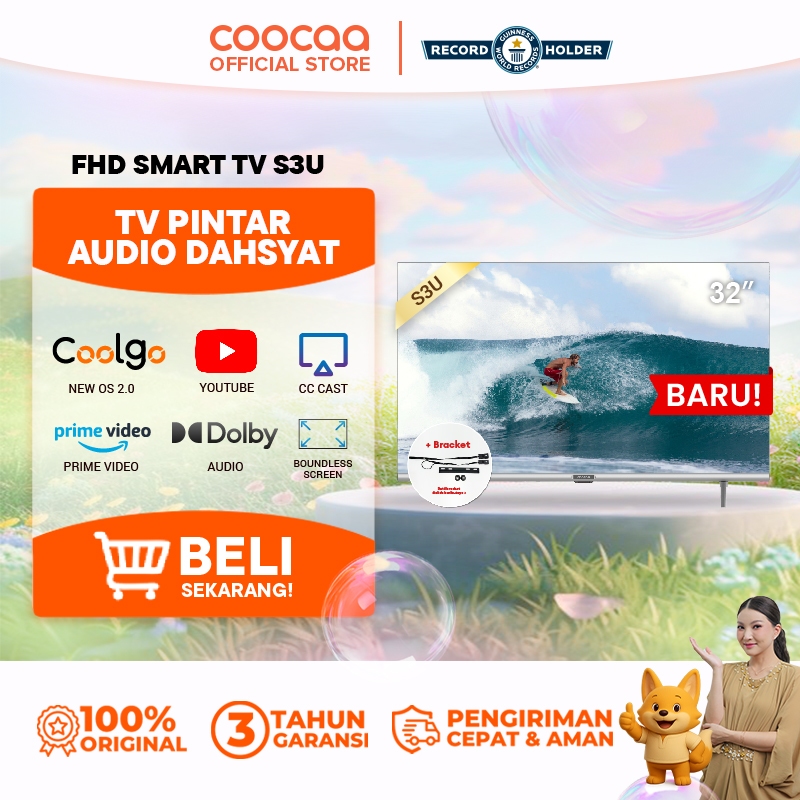 COOCAA 32 inch Smart TV S3U - Digital TV - Dolby Audio - Youtube - Mirroring - Flick Free - Boundless -Browser - WIFI