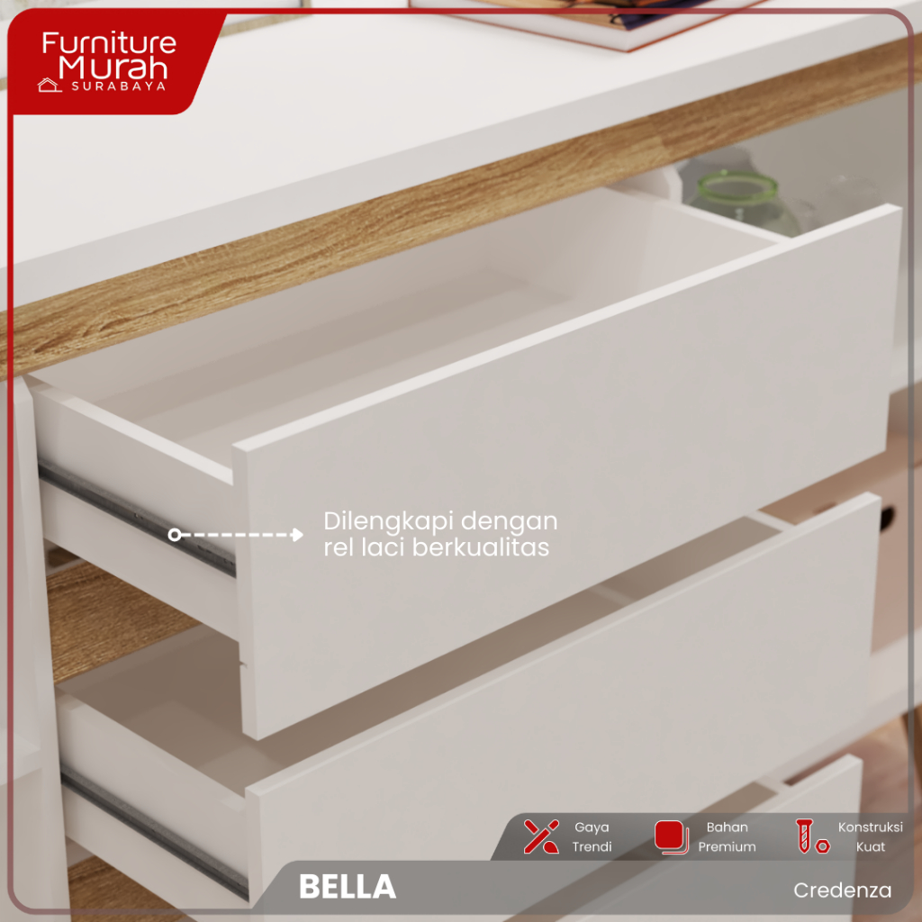 Credenza Bella Kabinet Murah Nakas Laci Perlengkapan Serbaguna