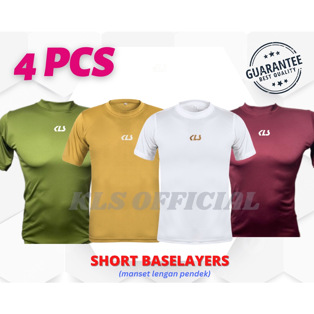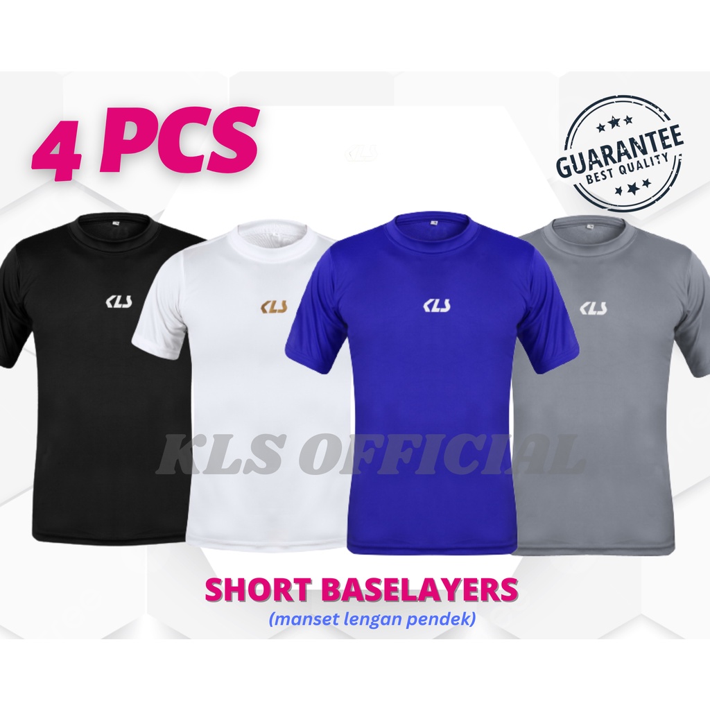 Paket 4 pcs Manset Lengan Pendek Baju Olahraga Pria Gym Wanita, Baselayers Kaos Pakaian Jogging