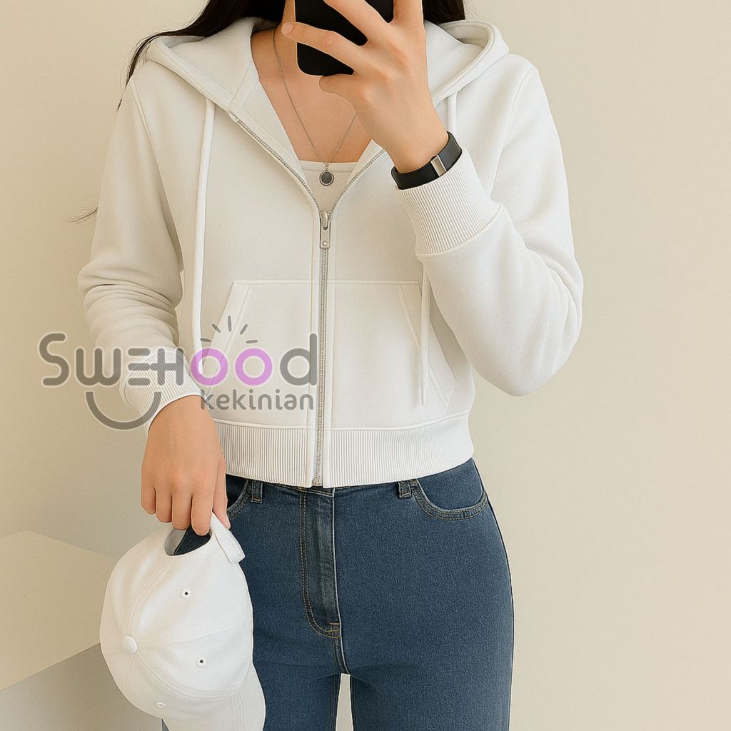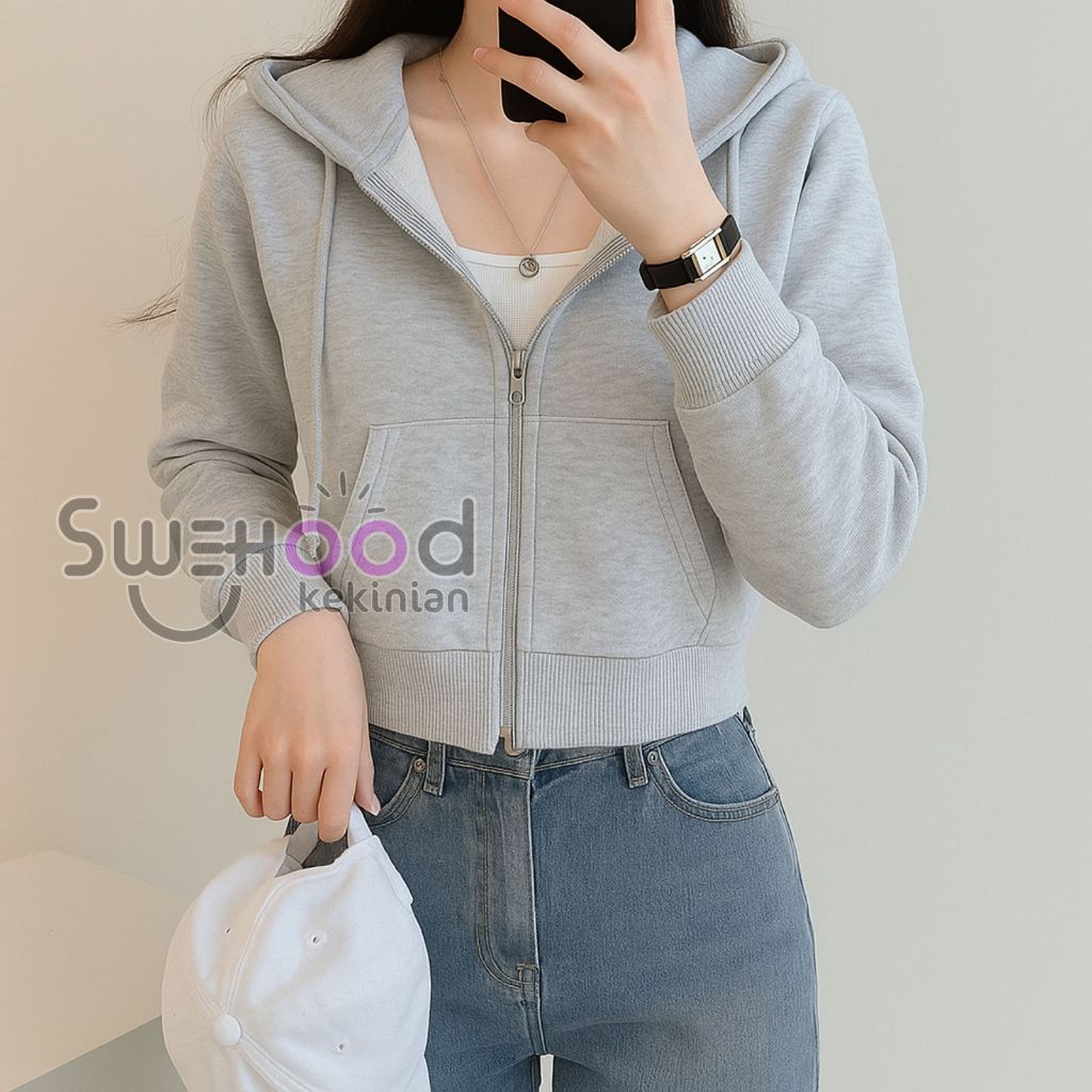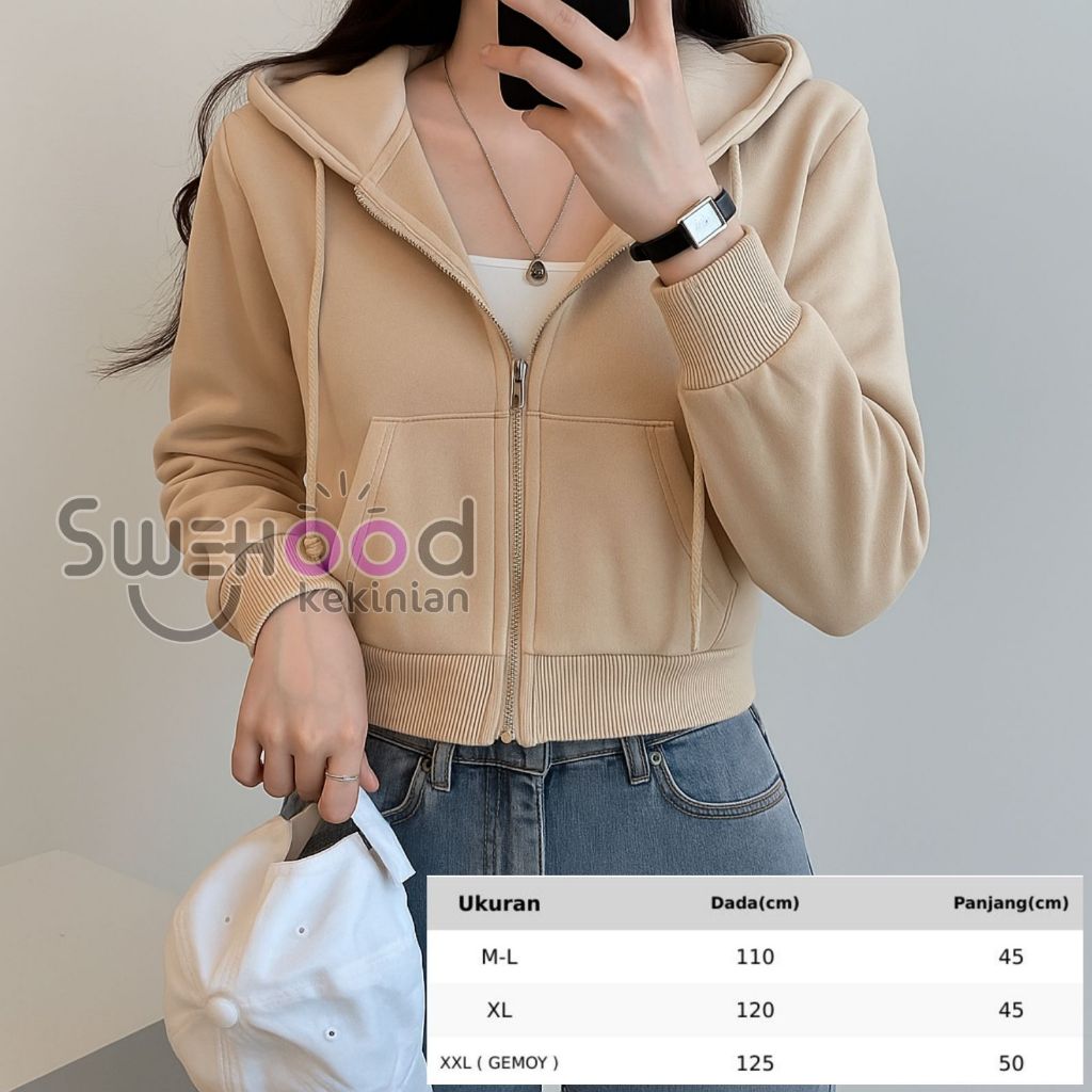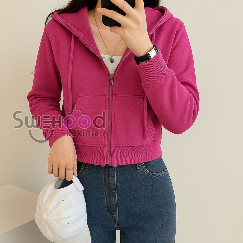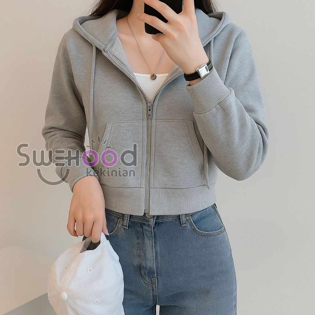Cropped Premium Basic Hoodie Zipper Crop Wanita Kekinian Korean Style Jaket Casual Stylish & Nyaman