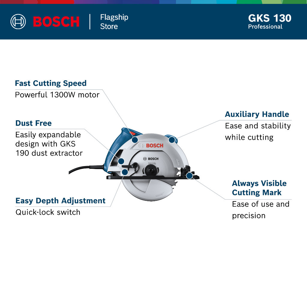 BOSCH Mesin Sirkular 7" GKS 130 / Circular Saw - 06016C30K0