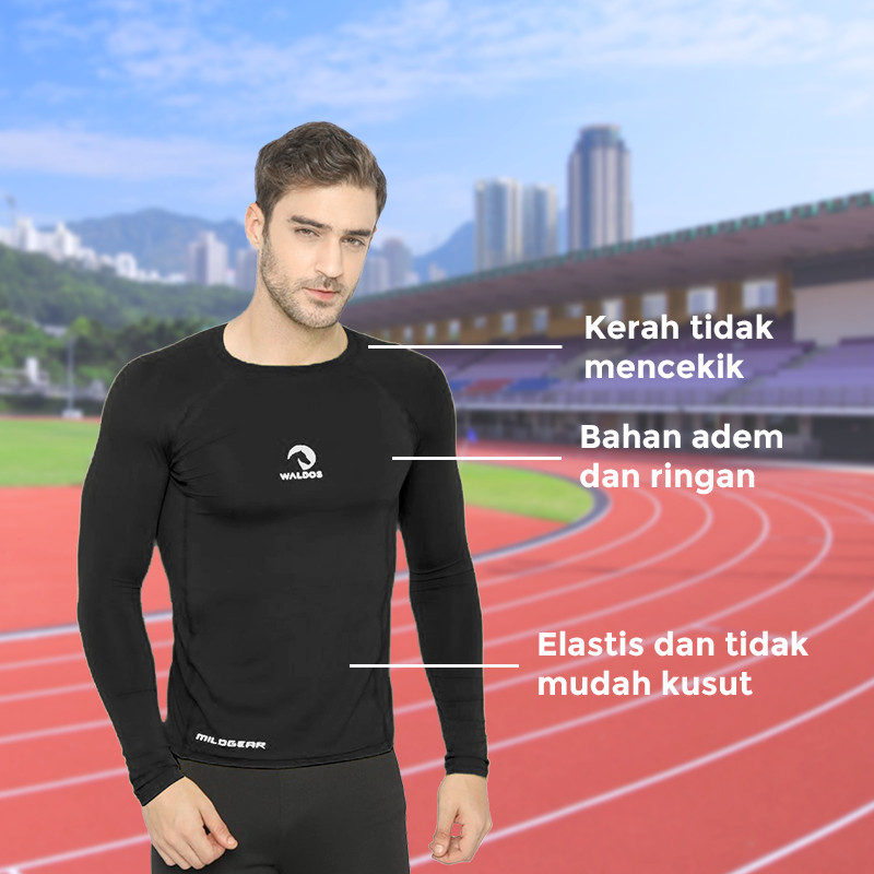 WALDOS Baselayer Pria Manset Pakaian Olahraga Round Neck Pakaian Olahraga Anti UV Running
