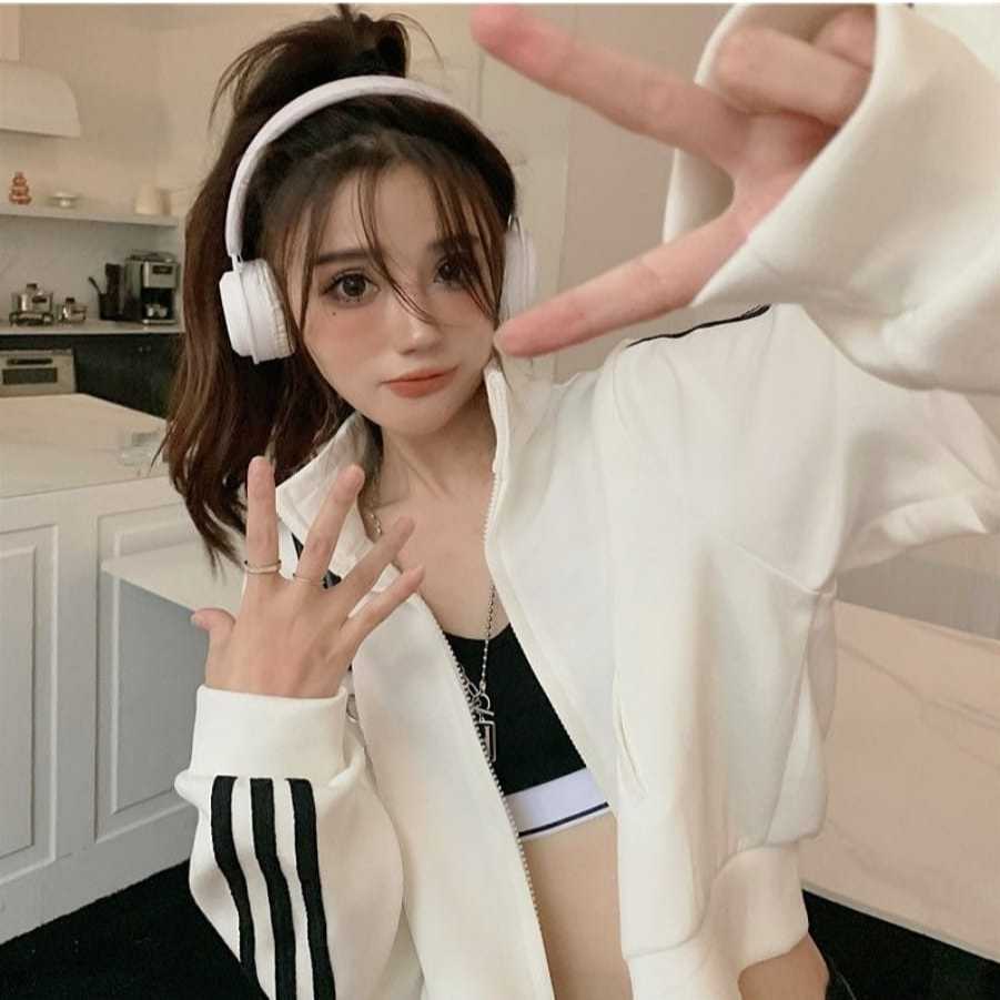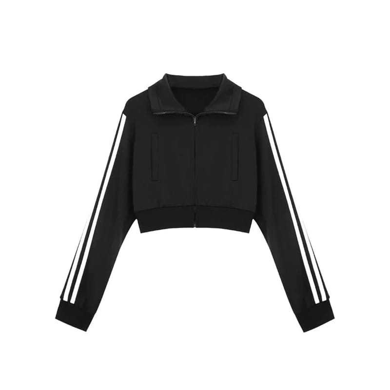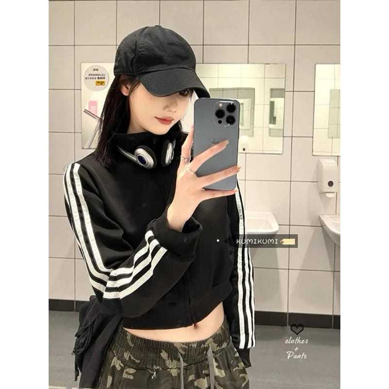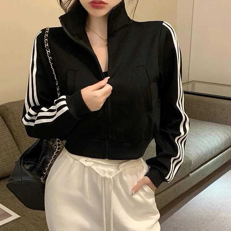 Stand Collar Jaket Vintage Crop Wanita - Jaket Crooped Wanita Korean Style